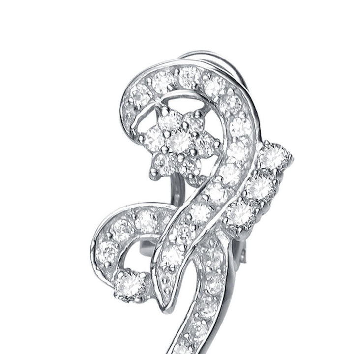Sterling Silver White Gold Plated With Clear Cubic Zirconia Filigree Earrings