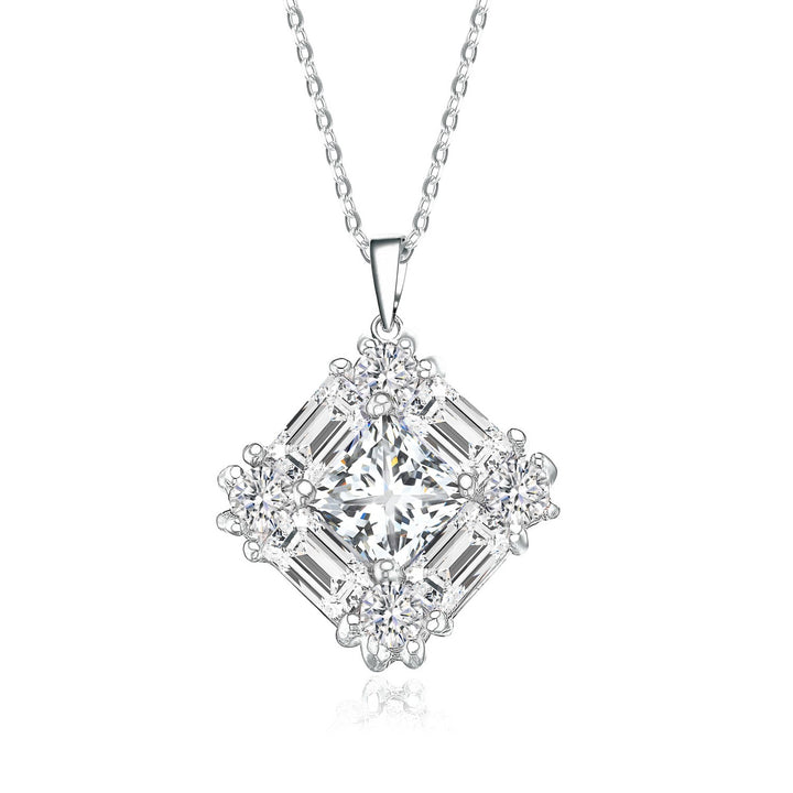 Sterling Silver Cubic Zirconia Square Necklace