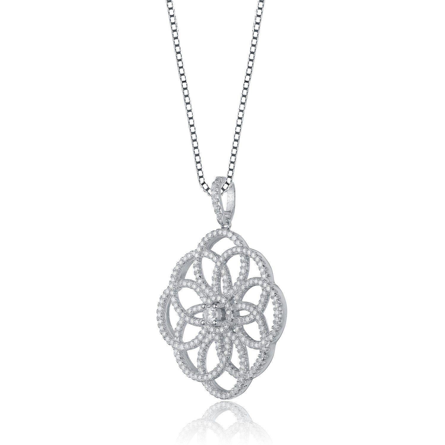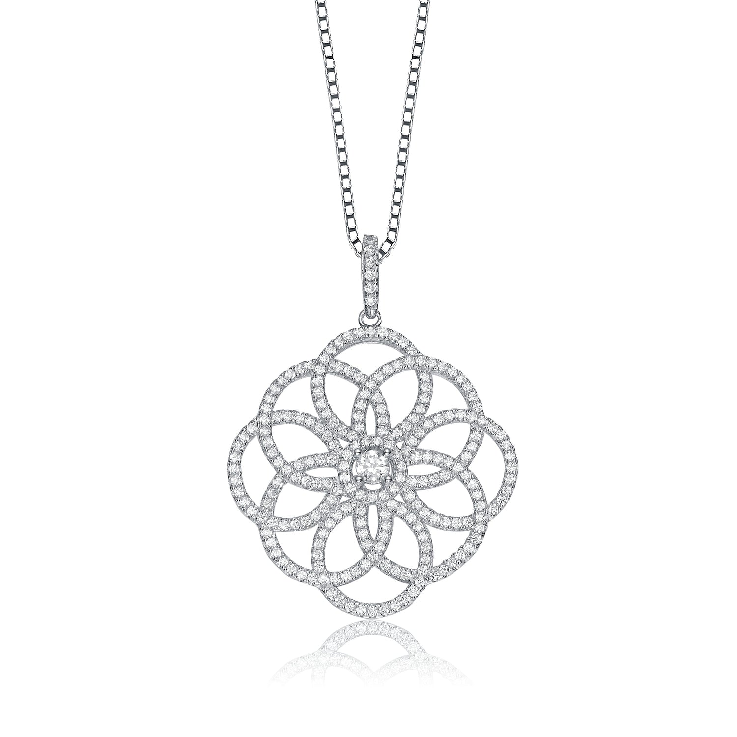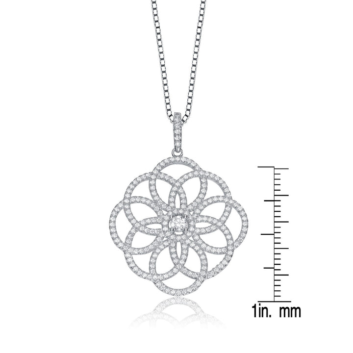 Sterling Silver White Cubic Zirconia Intricate Flower Pendant