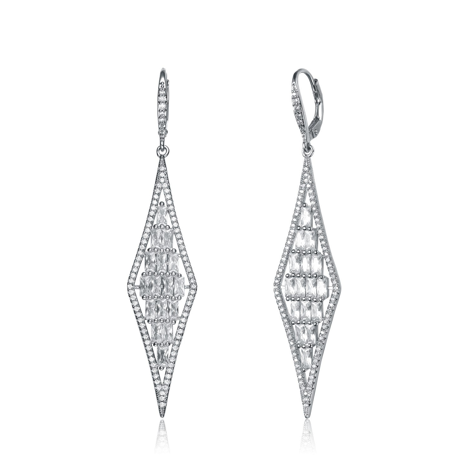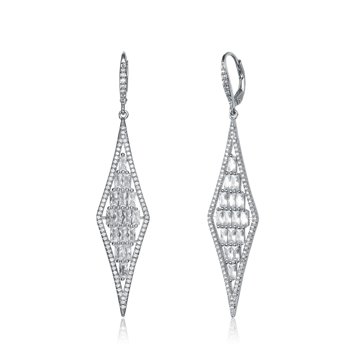 These Sterling Silver With Clear Cubic Zirconia Accent Drop Earrings by Genevive Jewelry are an elegant and timeless accessory. Adorned with clear cubic zirconia, these drop earrings exude timeless charm. They feature a secure leverback clasp and are available in a white gold or 18k rose gold plated finish.