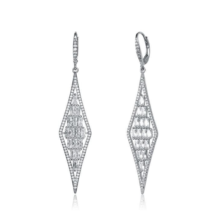 Sterling Silver With Clear Cubic Zirconia Accent Drop Earrings