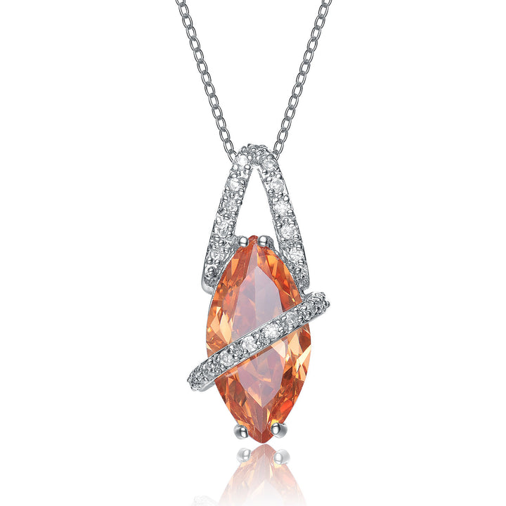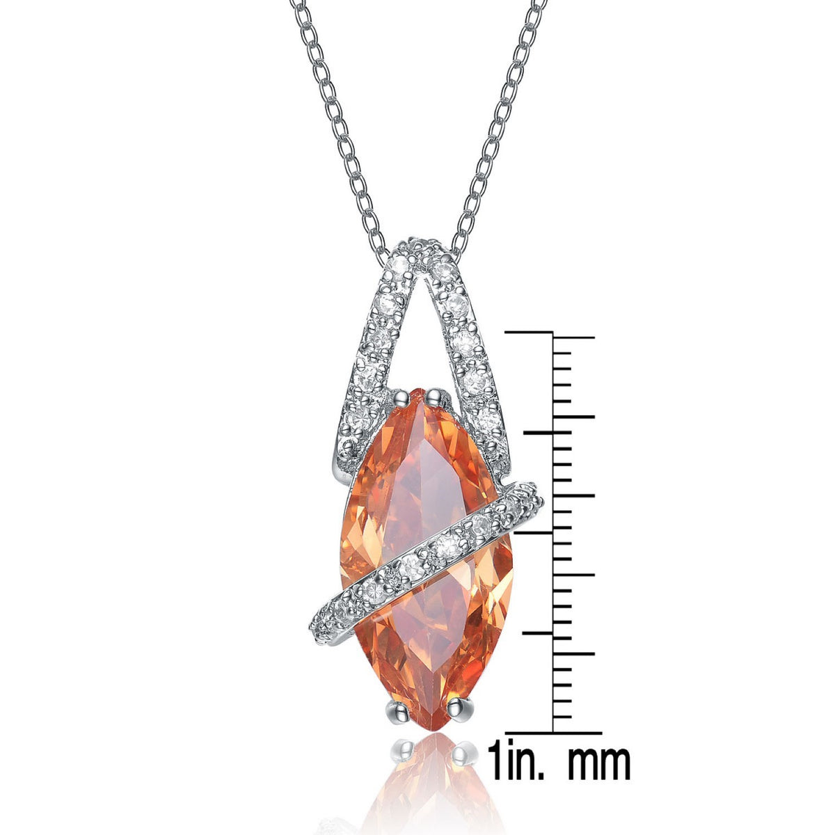This pendant is crafted from sterling silver and features a large oval-shaped orange cubic zirconia stone and other small cubic zirconia stones. To maintain its quality, use a suede cloth to clean it and avoid contact with water.