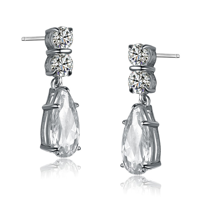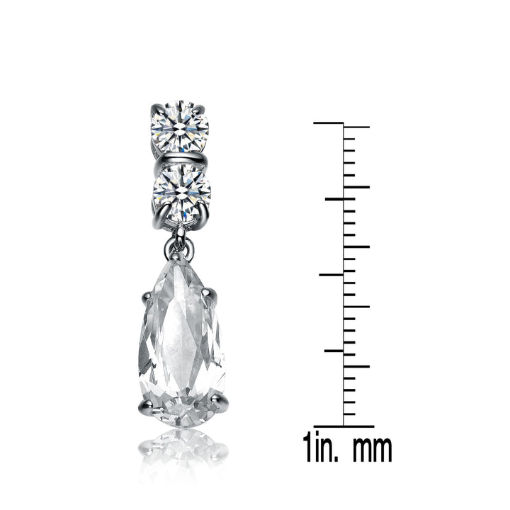 Sterling Silver White Gold Plated With Clear Cubic Zirconia Teardrop Earrings