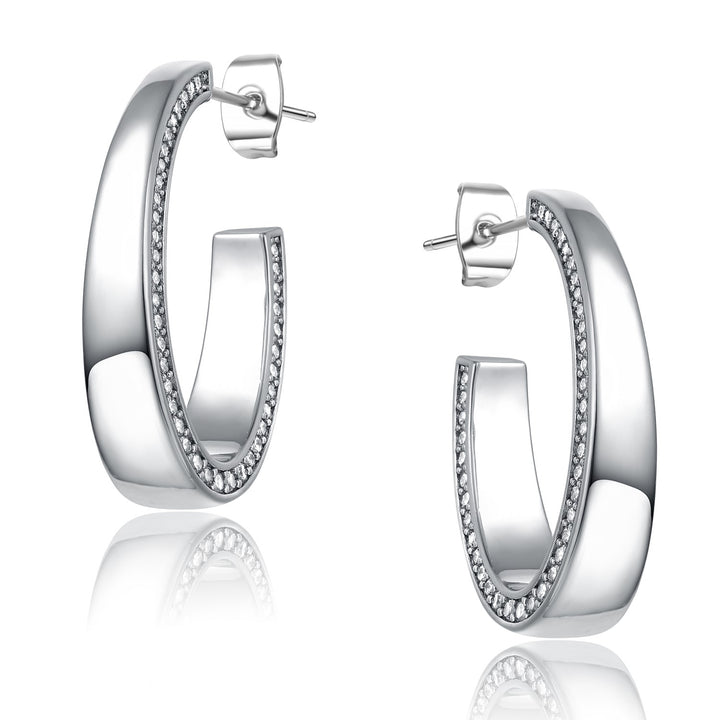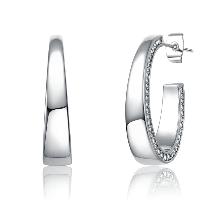 Sterling Silver With Cubic Zirconia Tapered ¾ C-Hoop Earrings