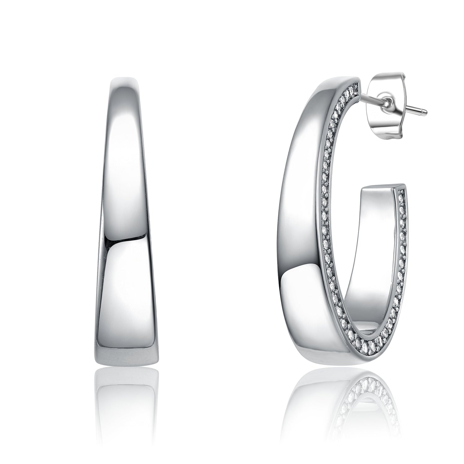 The Sterling Silver With Cubic Zirconia Tapered ¾ C-Hoop Earrings by Genevive Jewelry are a beautiful and modern accessory. These ¾ C-hoop earrings, which are crafted in a rich, luscious shine with a tapered shape, will elevate your look. They are trimmed with round brilliant cut cubic zirconias and are crafted in brightly polished White Gold plated sterling silver.