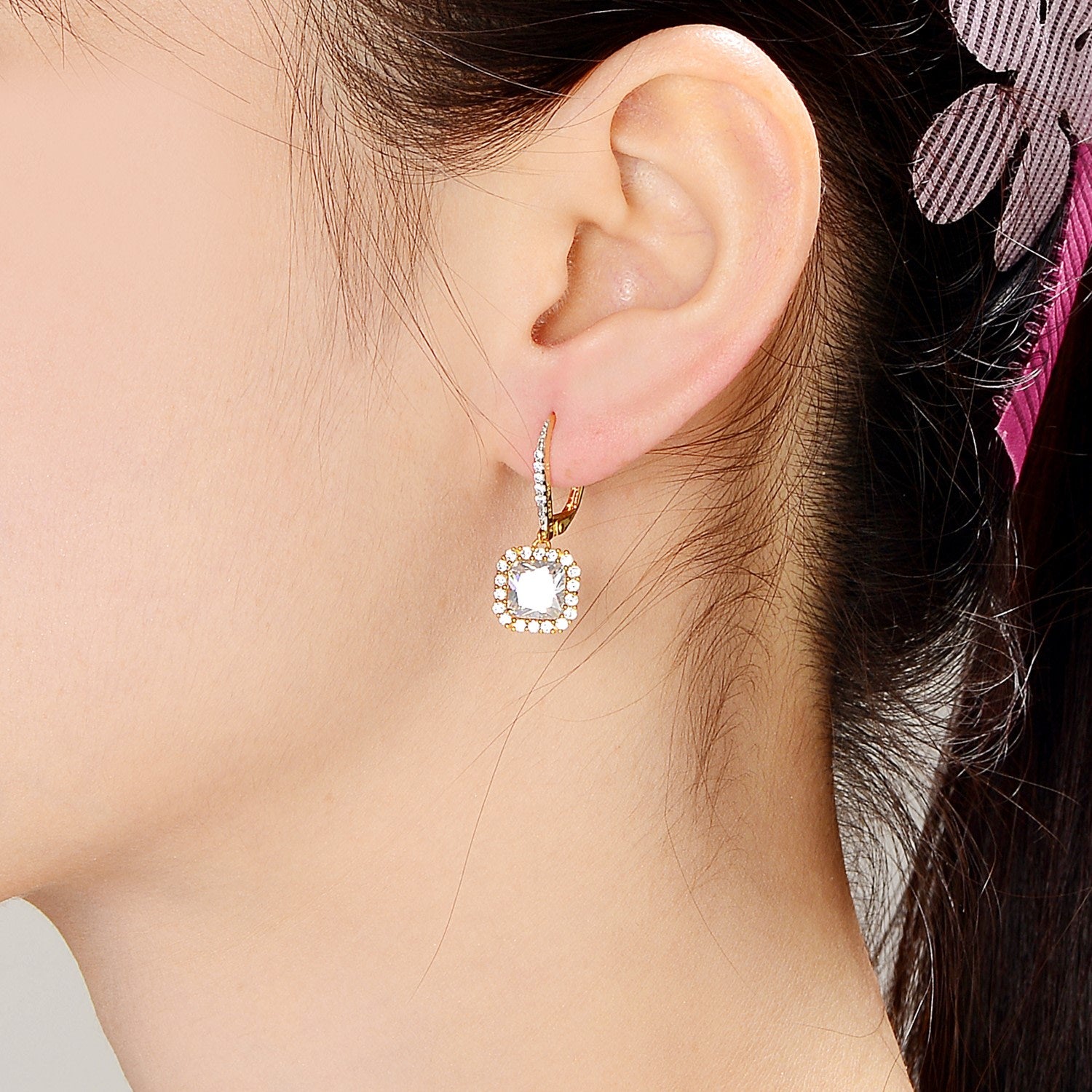 Sterling Silver Gold Plated Cubic Zirconia Square Drop Earrings