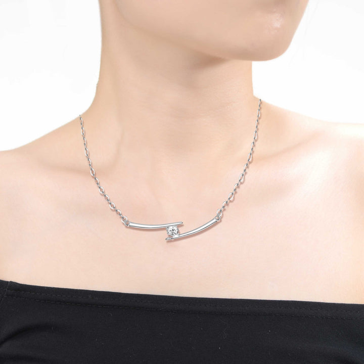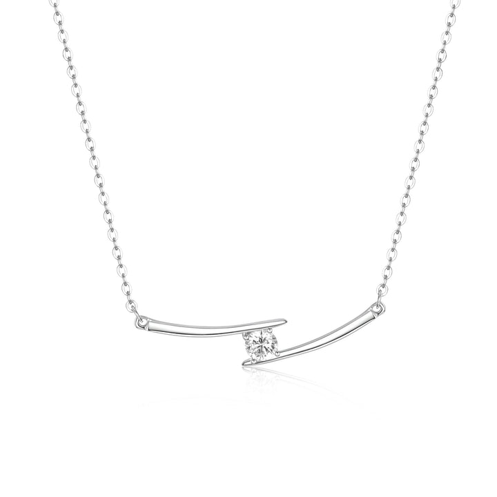 Sterling Silver With Cubic Zirconia Solitaire Double Bar Pendant Necklace