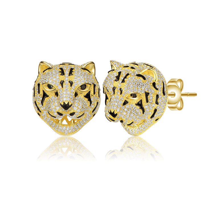 Sterling Silver Yellow Gold Plated With Cubic Zirconia Leopard Head Stud Earrings