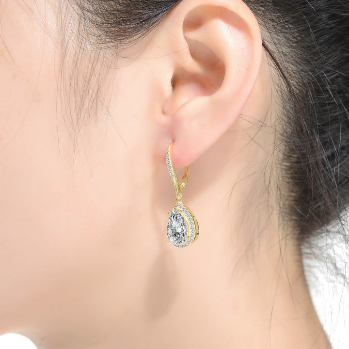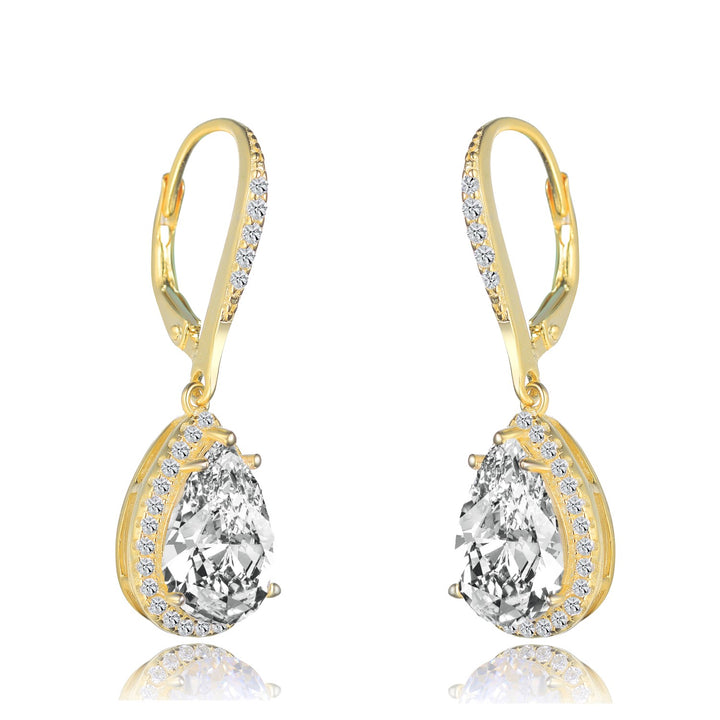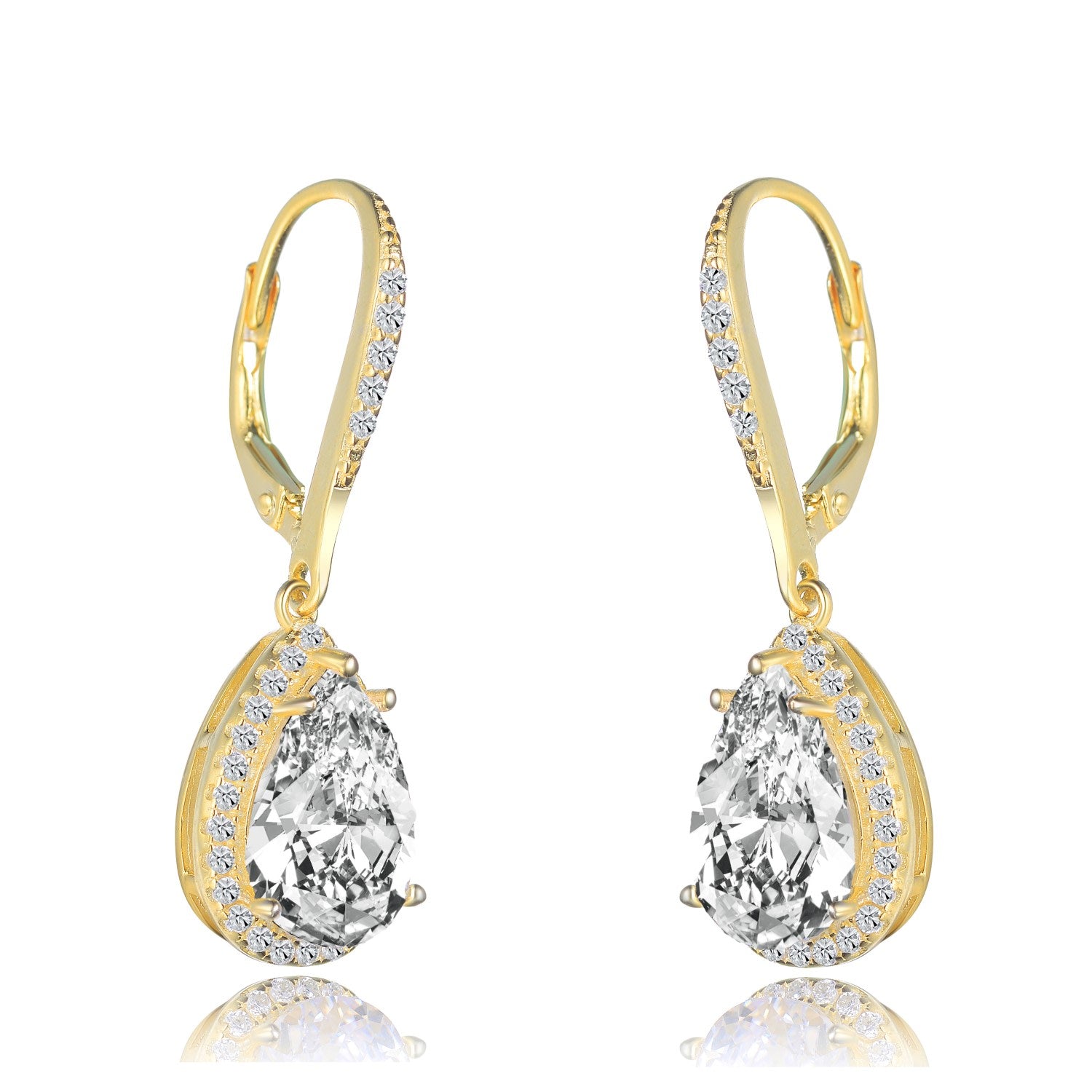 Sterling Silver Gold Plated Cubic Zirconia Pear Drop Earrings