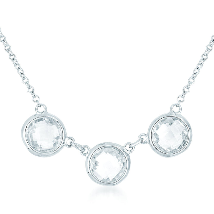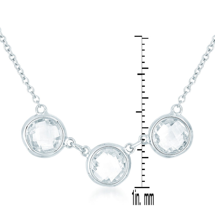Sterling Silver White Gold Plated With Three Round Clear Cubic Zirconia Necklace