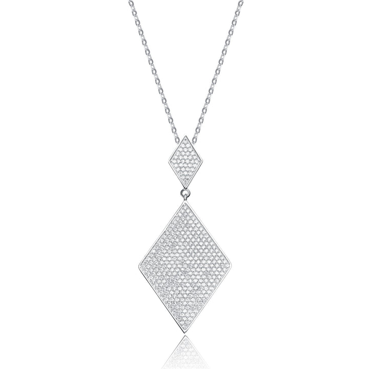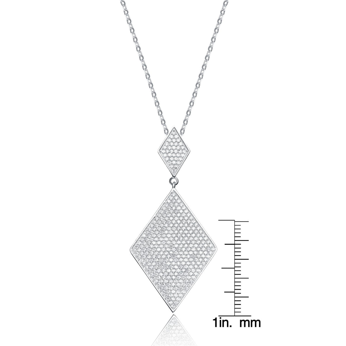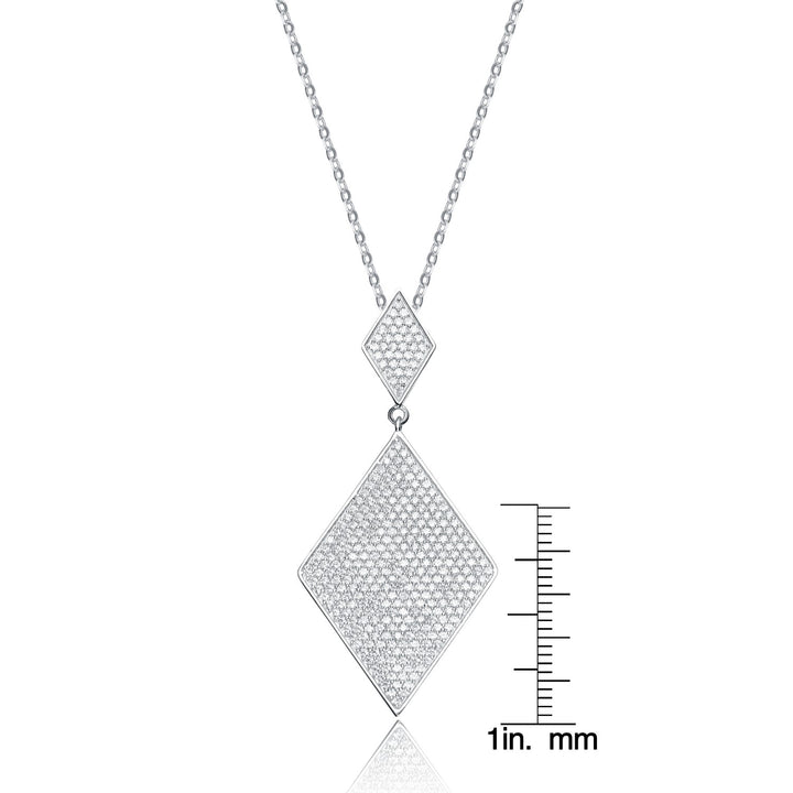 Sterling Silver Rhodium Plated White Cubic Zirconia Two Connected Diamond-Shaped Figures Pendant