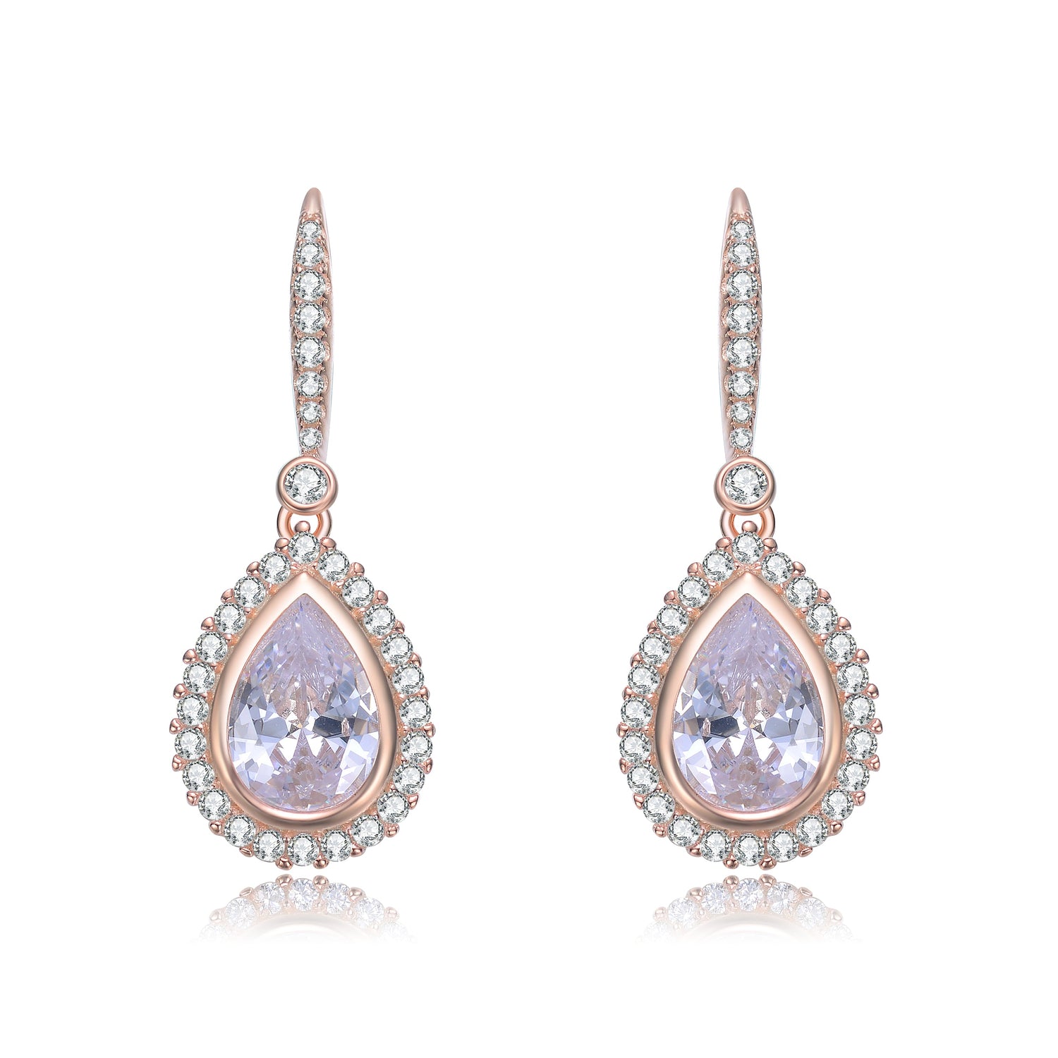 Sterling Silver Rose Gold Plated With Clear Cubic Zirconia Accent Teardrop Dangle Earrings