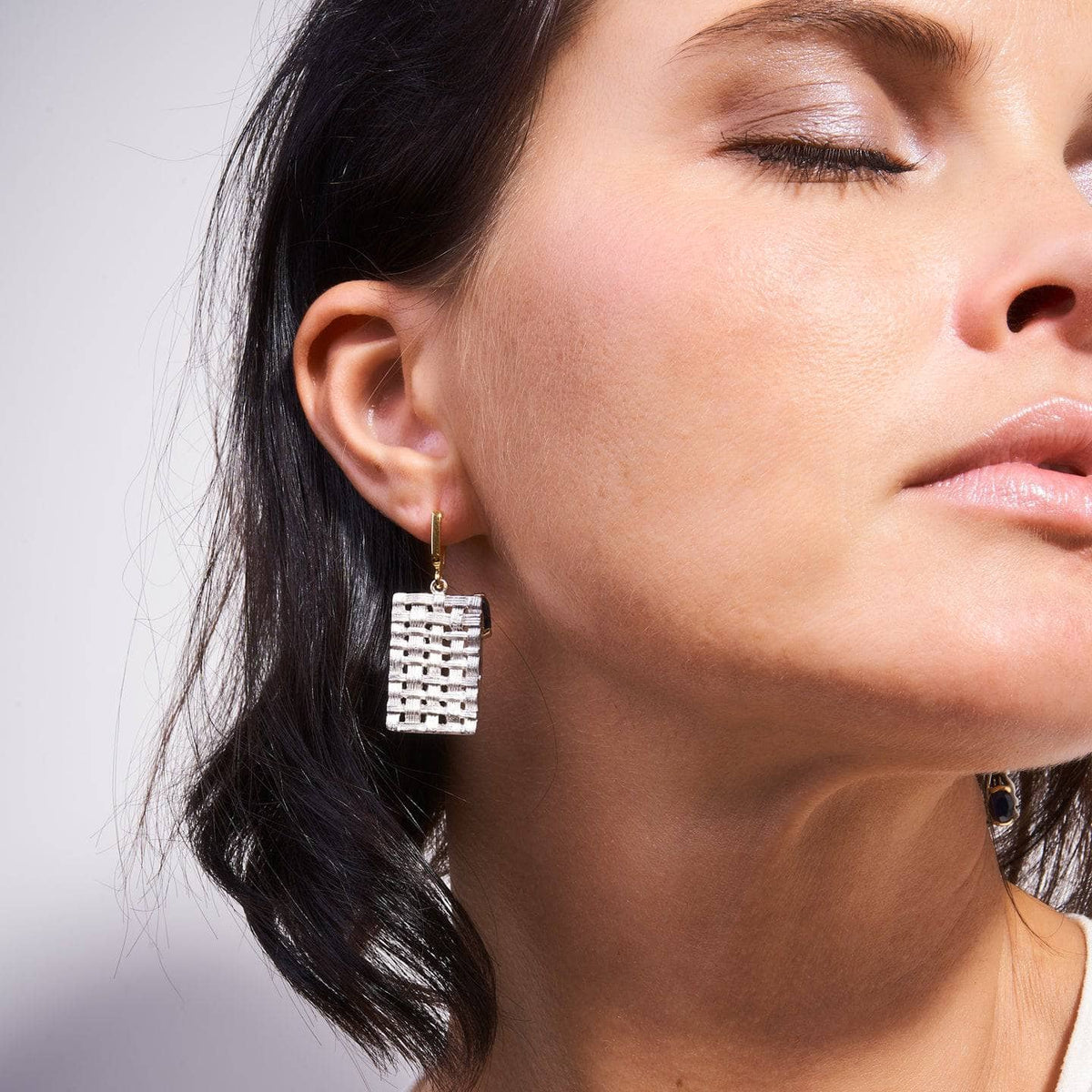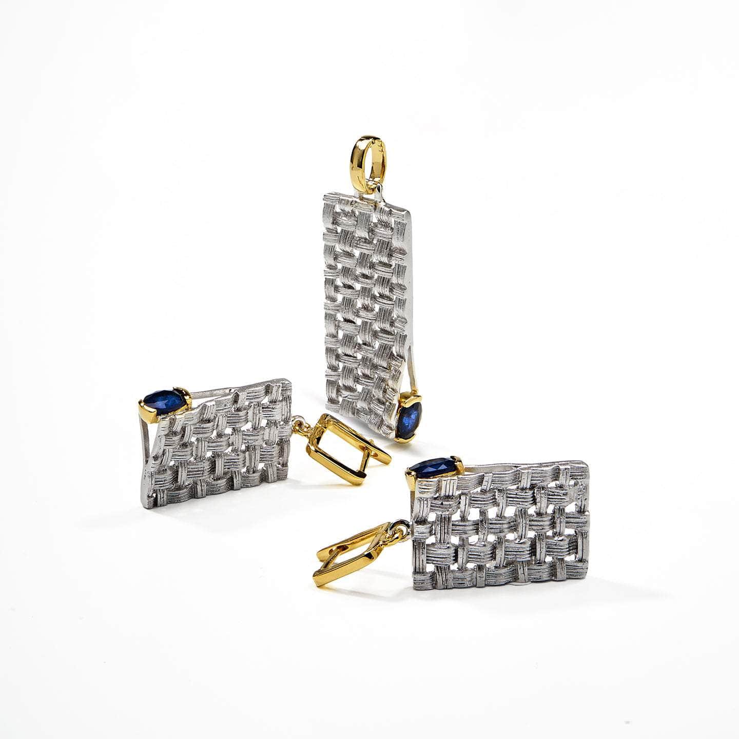 These earrings are made of 925 Silver with White Rhodium and 18-karat Gold plating. The stones are sapphire.