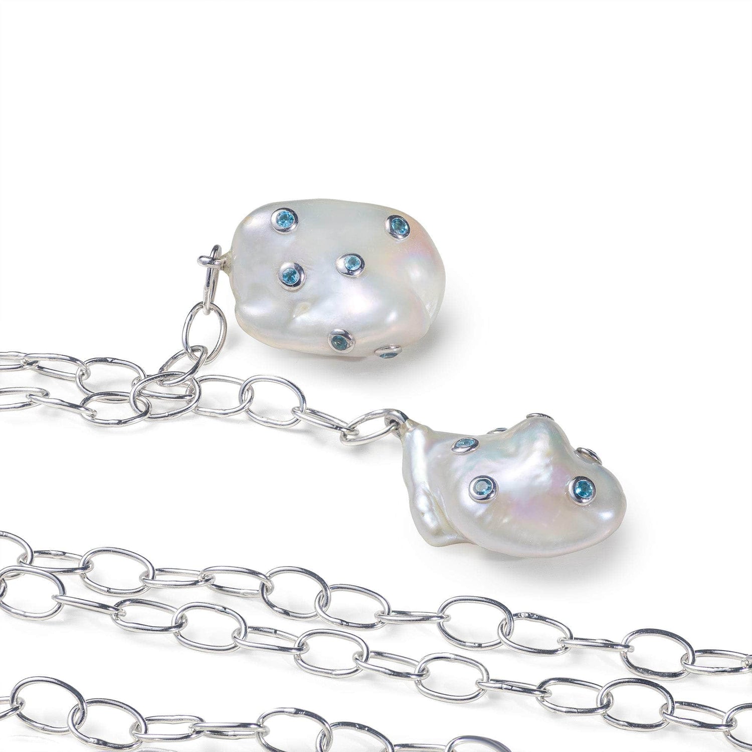 Cadena Baroque Pearl & London Blue Topaz Necklace