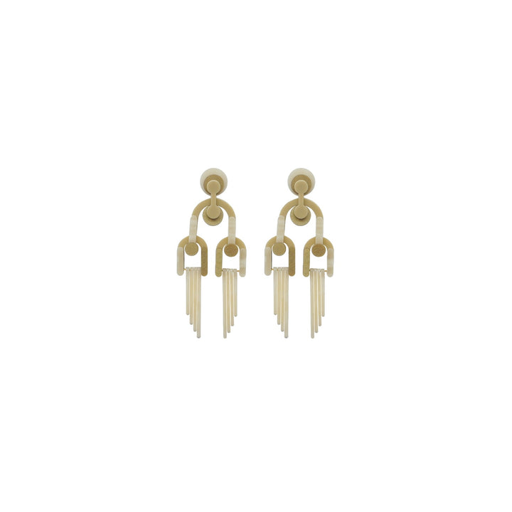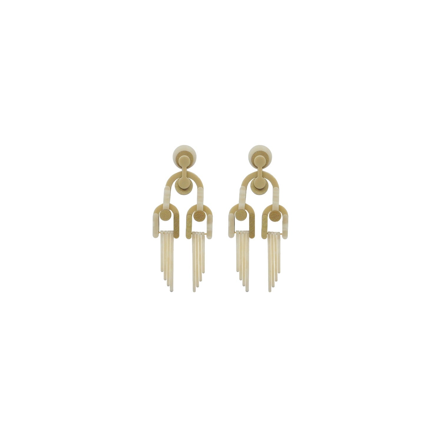 These Handmade Acrylic Earring Cladogram / Cream by Gissa Bicalho are a unique and sophisticated accessory. These handmade acrylic earrings are geometric and articulated, generating movement. They are a perfect piece for those who want to feel stylish and different.