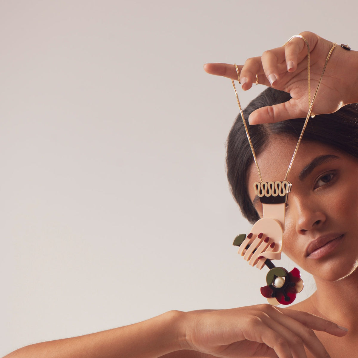 Founded in Brazil in 2012 by designer Gissa Bicalho, the brand is known for bold statement jewelry crafted from acrylic, resin, and brass. Each piece is designed and handmade in Belo Horizonte, combining vibrant colors, architectural forms, and artistic flair. Inspired by contemporary art, geometry, and Brazilian culture, Gissa Bicalho’s creations are instantly recognizable and celebrate individuality through striking, wearable design.