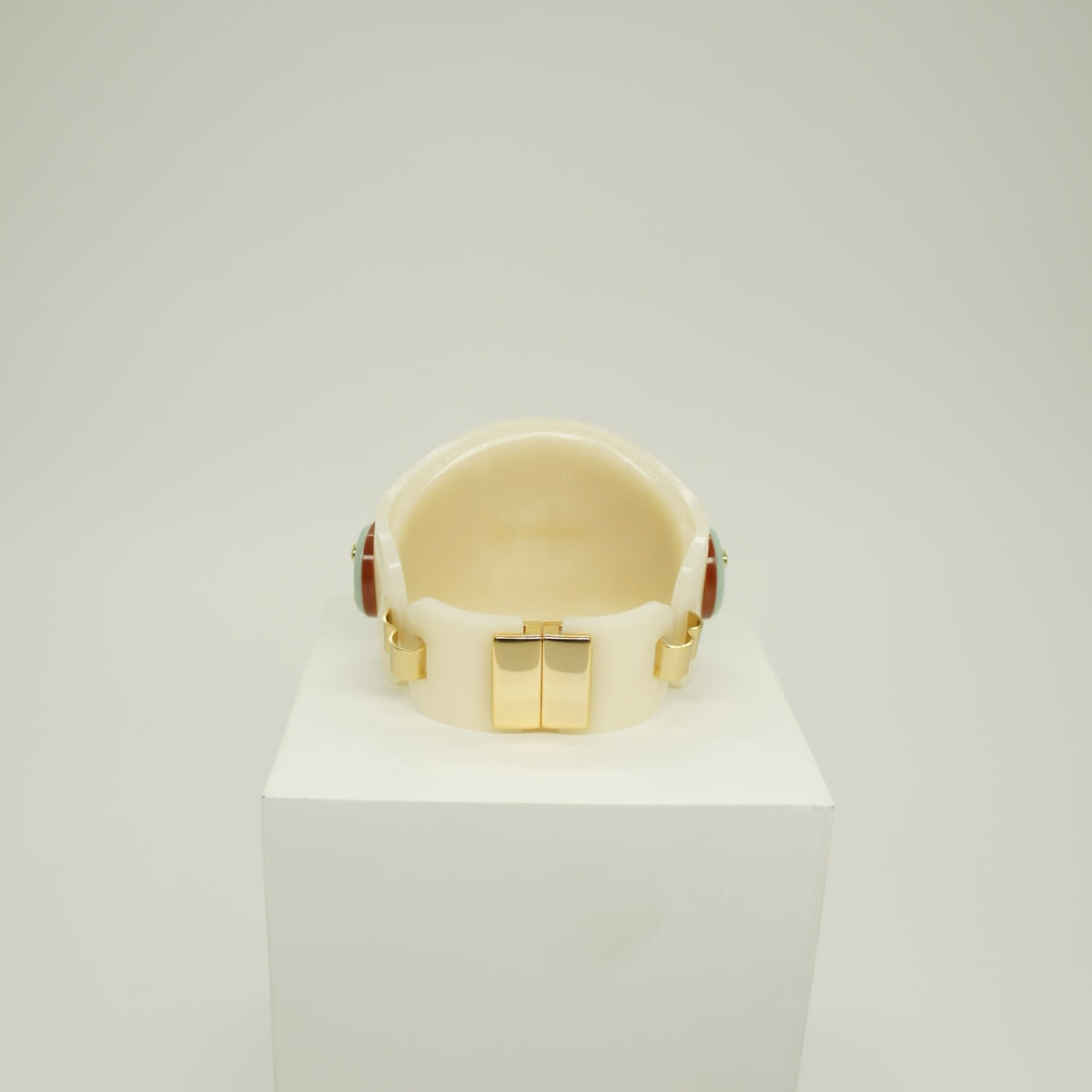 This Handmade Acrylic Bracelet Ybyra Cream by Gissa Bicalho is a unique and sophisticated handmade accessory. The perfect mix of acrylic, wood, straw, and metal gives this piece a modern, earthy, and refined feel. Handcrafted with love in Brazil, it is a testament to the beauty of combining different materials.