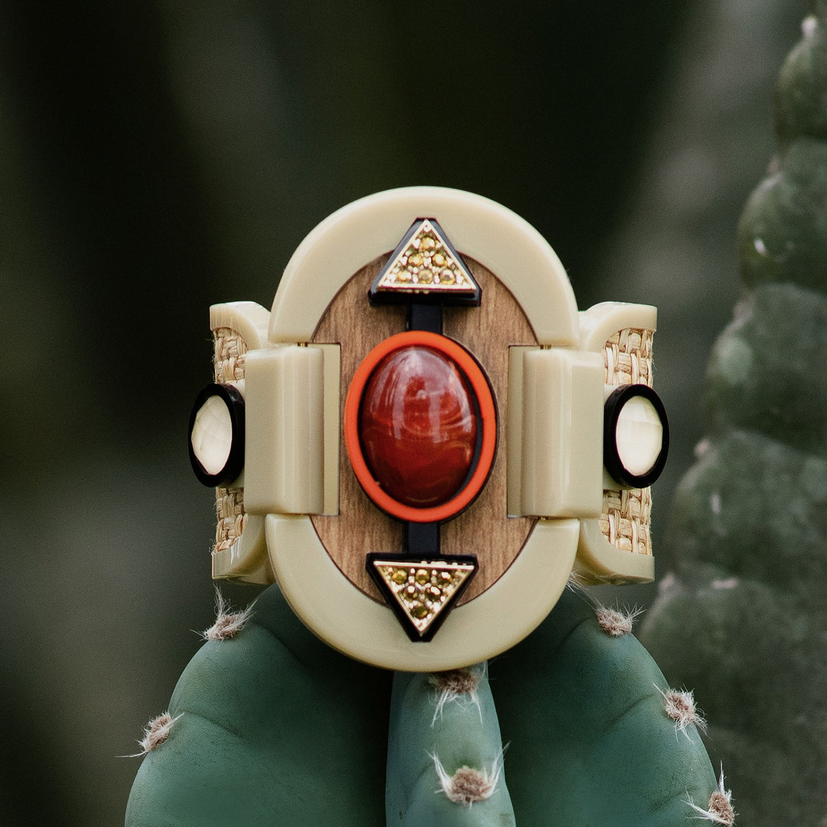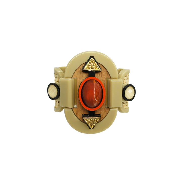 This Handmade Acrylic Bracelet Ita Cream by Gissa Bicalho is a special and sophisticated handmade accessory. The perfect mix of acrylic, wood, straw, and metal creates a piece that is both modern and luxurious. Handcrafted with love in Brazil, this bracelet is a testament to the beauty of combining different materials.