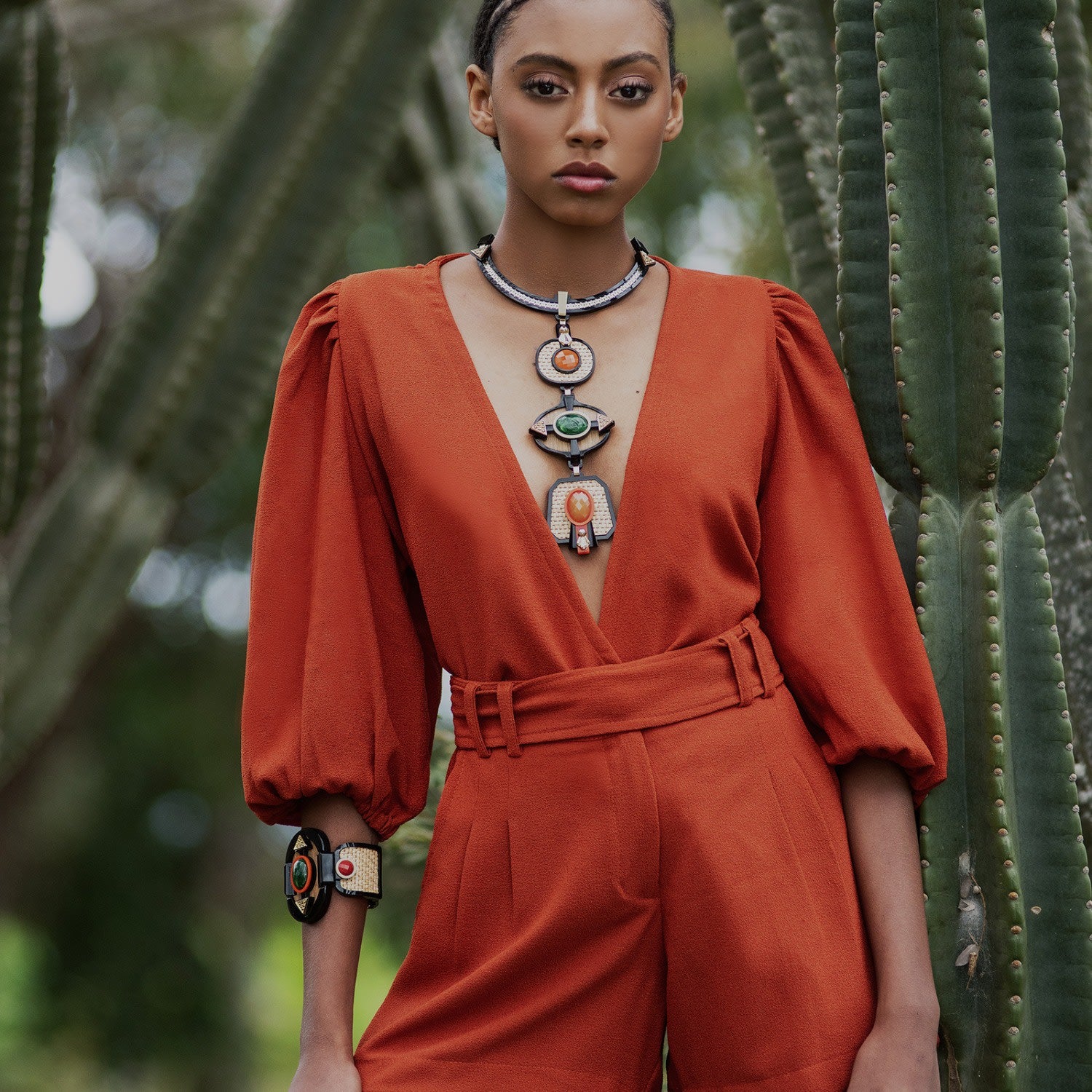 Founded in Brazil in 2012 by designer Gissa Bicalho, the brand is known for bold statement jewelry crafted from acrylic, resin, and brass. Each piece is designed and handmade in Belo Horizonte, combining vibrant colors, architectural forms, and artistic flair. Inspired by contemporary art, geometry, and Brazilian culture, Gissa Bicalho’s creations are instantly recognizable and celebrate individuality through striking, wearable design.