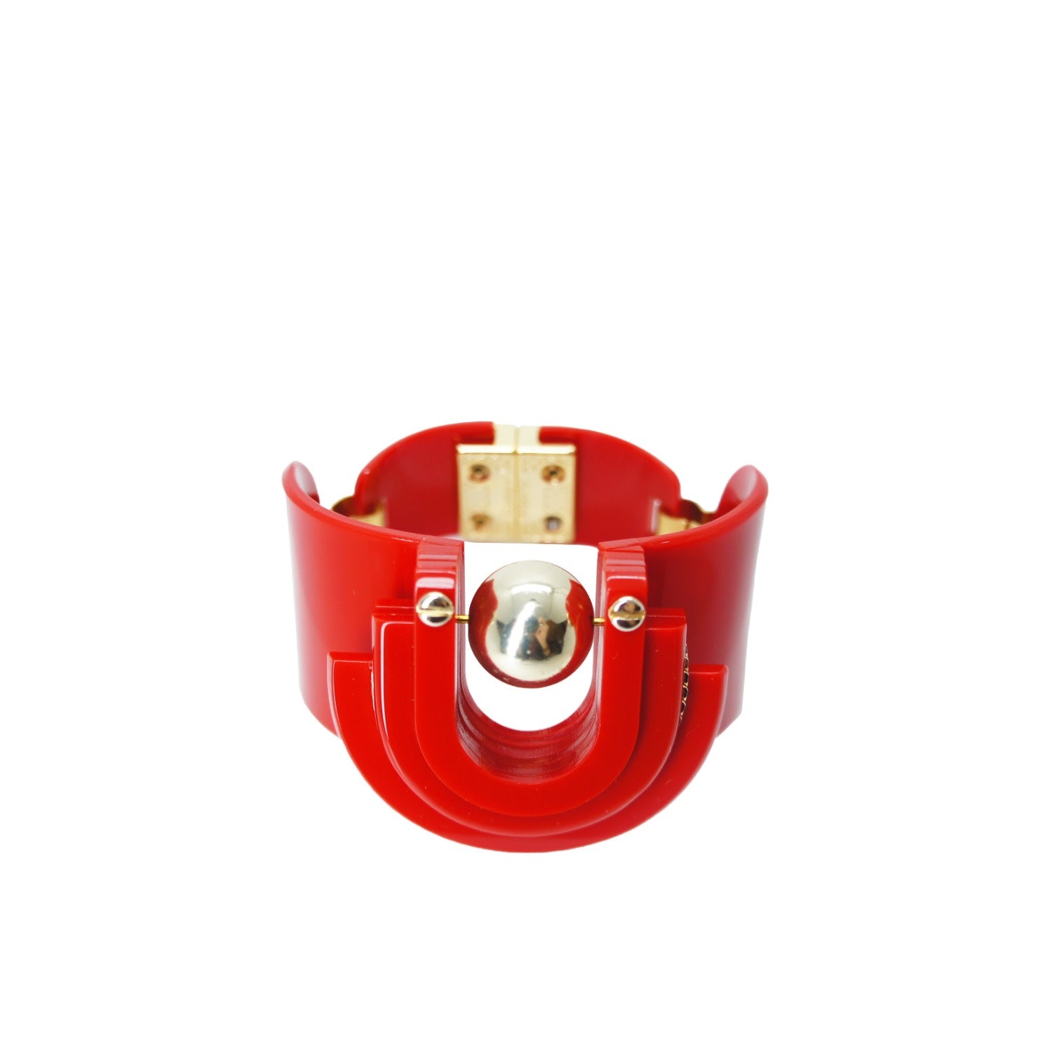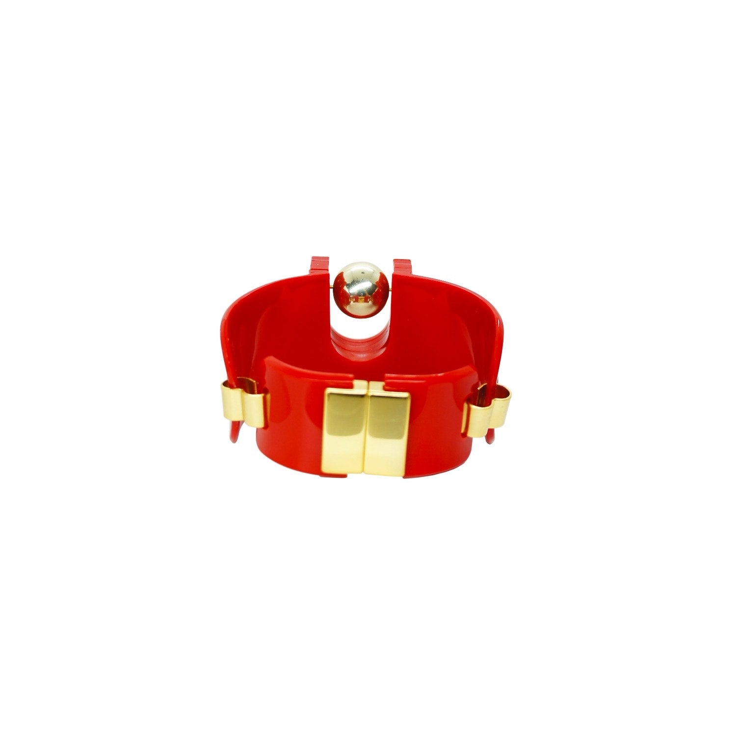 This Handmade Acrylic Bracelet Craft Verner Red by Gissa Bicalho is a unique and artistic accessory. The handmade acrylic bracelet has an articulated design with an ABS bead and a magnet closure. The gold-finished metals complement the vibrant color, making it a stylish and bold statement piece.