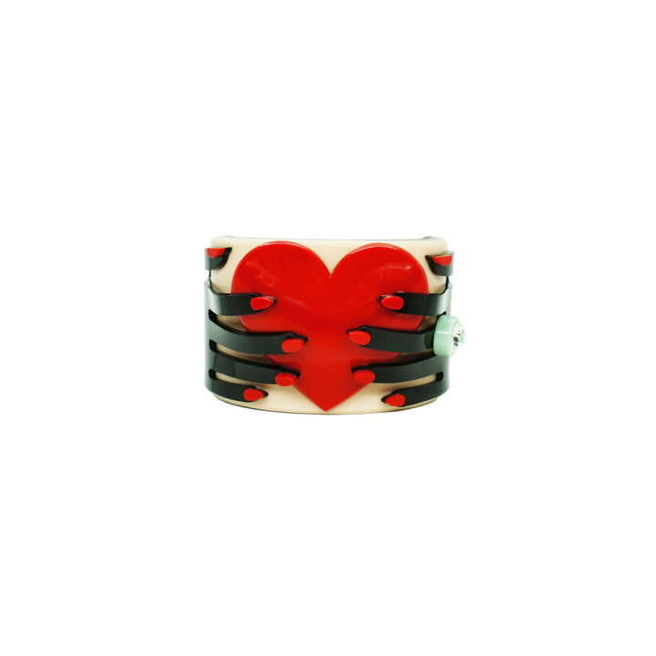 Acrylic Handmade Bracelet Hands & Heart Black & Rose
