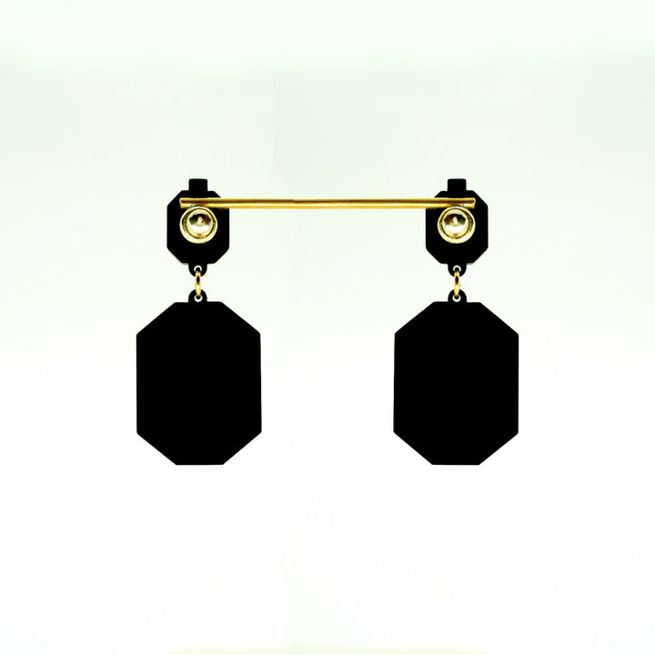 These handmade dangle earrings are crafted from acrylic with a glass stone application and a gold finish.