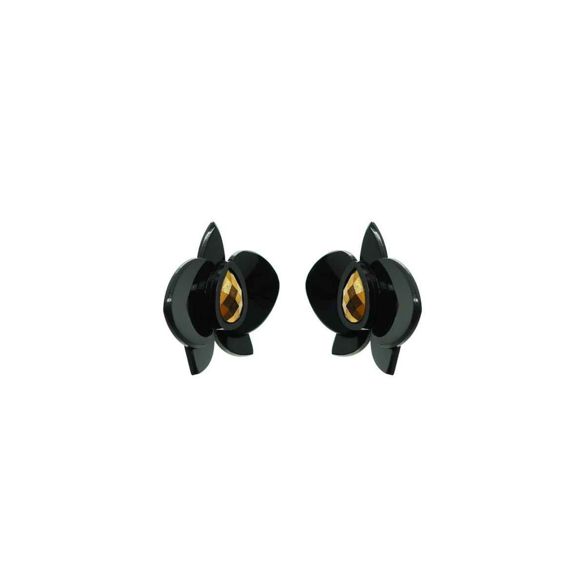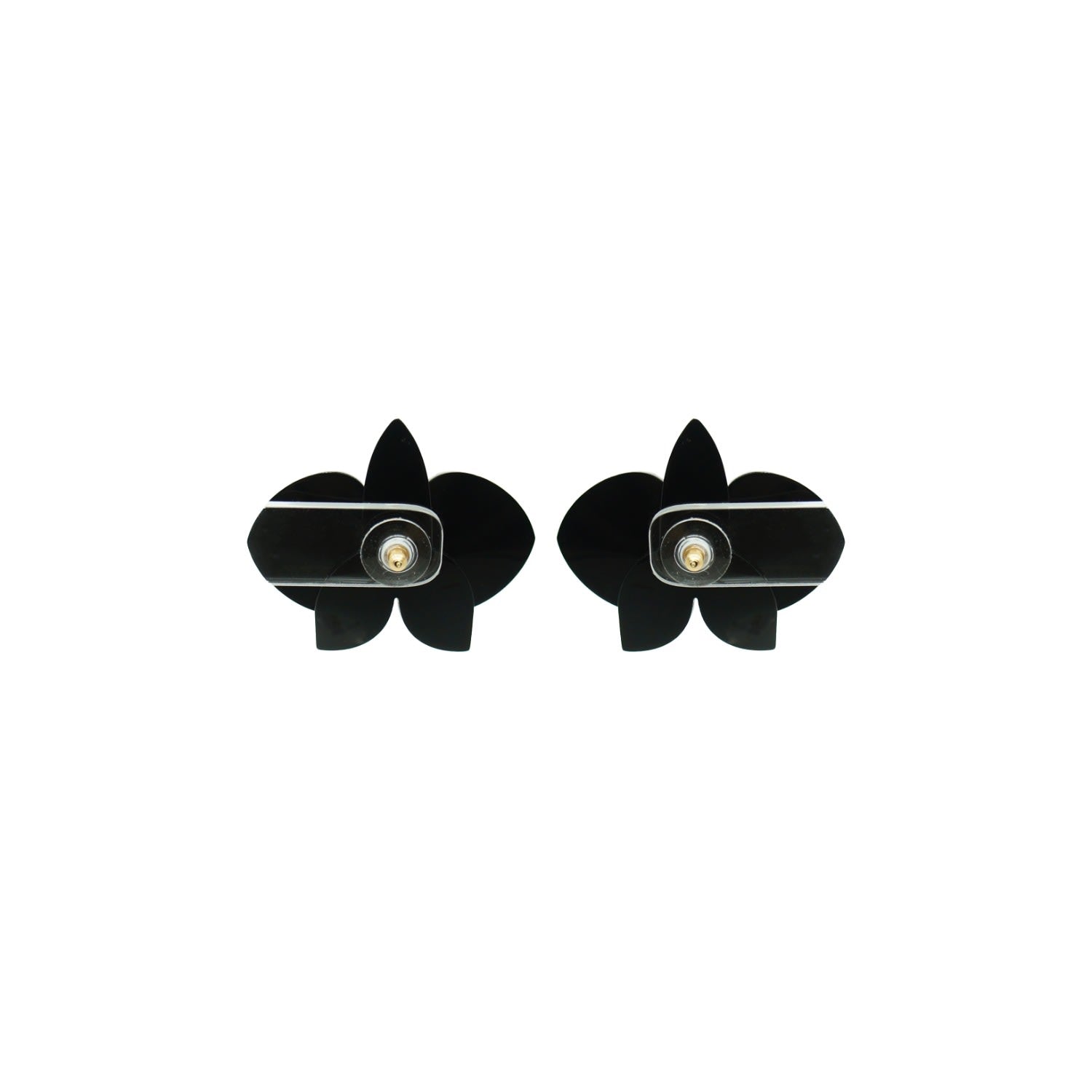 These Acrylic Handmade Earring Xs Orchid Black by Gissa Bicalho are a modern and minimalist accessory with a subtle edge. The short, acrylic orchid-inspired design with a mirrored glass stone creates a sleek and artistic aesthetic. These stud earrings are a perfect choice for those who appreciate handcrafted quality and a unique, understated style that stands out from the crowd.