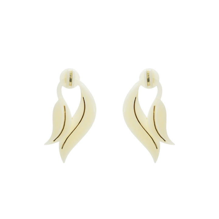 Acrylic Handmade Earring Leaf Deco Cream