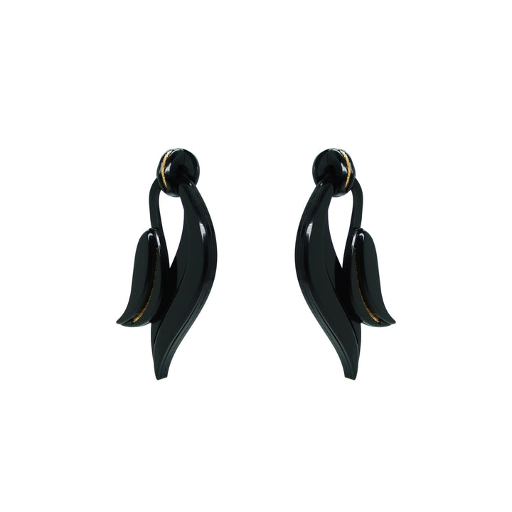 Acrylic Handmade Earring Leaf Deco Black