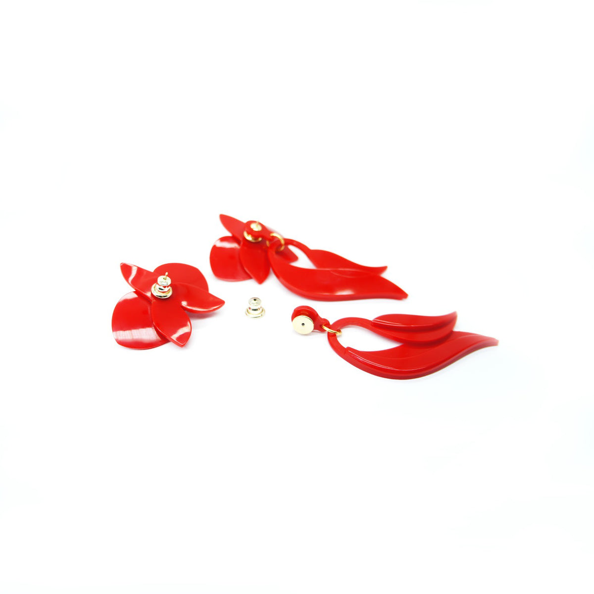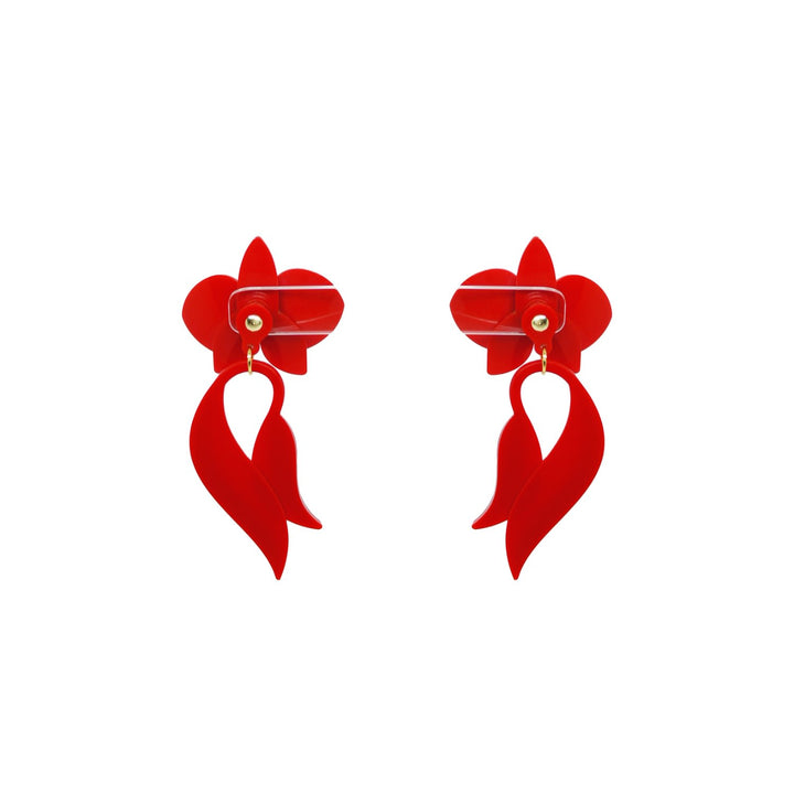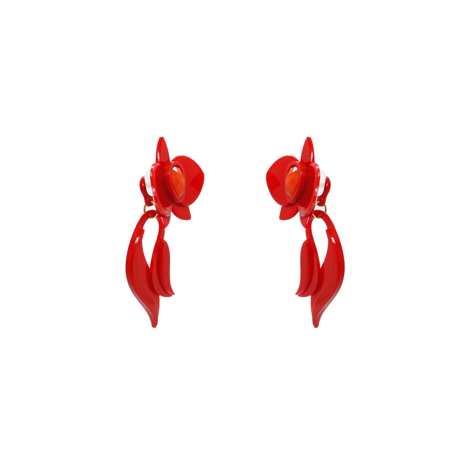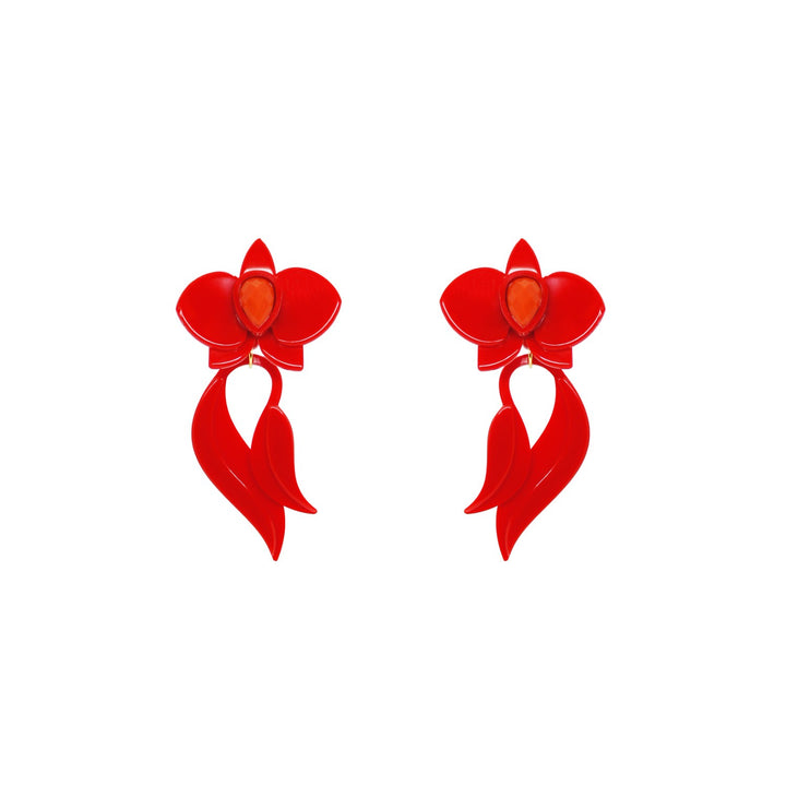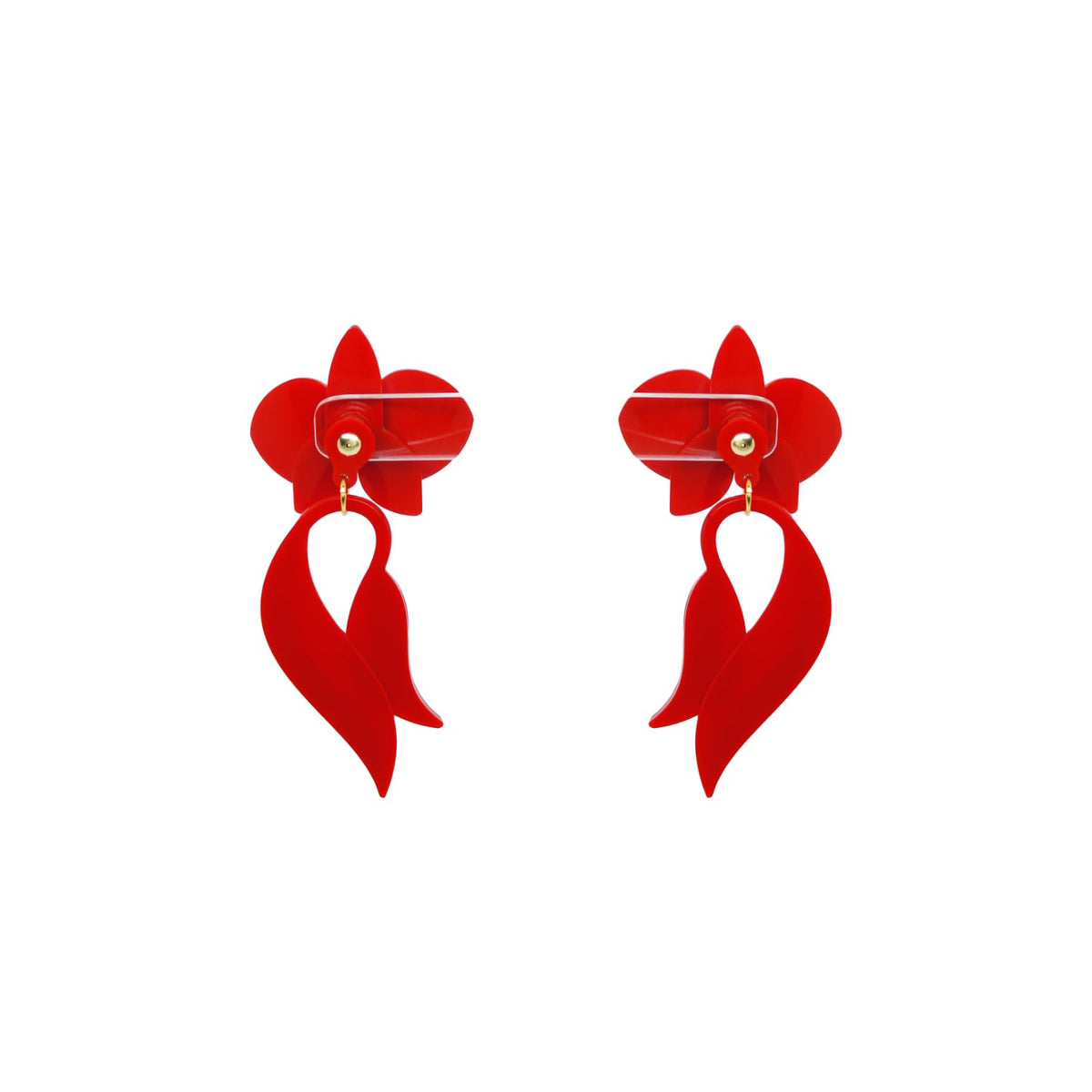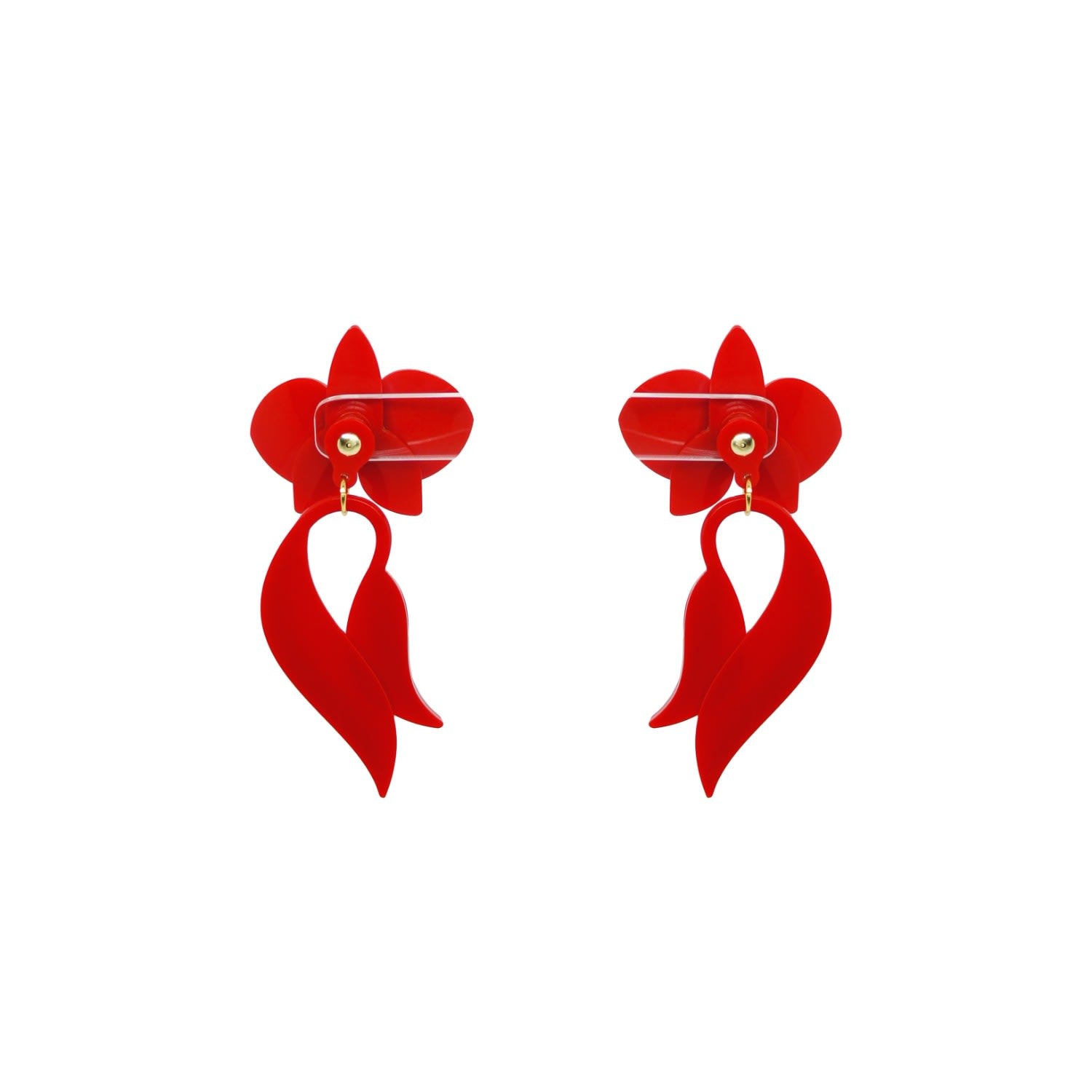 These Acrylic Handmade Earring Deco Orchid Red by Gissa Bicalho are an artistic and modern accessory. The articulated earrings feature a mirrored glass stone with golden-finished metals, creating a bold and captivating statement piece. Its handcrafted nature ensures that each piece is slightly unique, adding a personal and one-of-a-kind touch to your style.