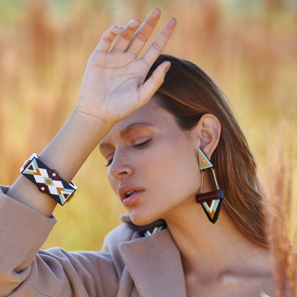 Founded in Brazil in 2012 by designer Gissa Bicalho, the brand is known for bold statement jewelry crafted from acrylic, resin, and brass. Each piece is designed and handmade in Belo Horizonte, combining vibrant colors, architectural forms, and artistic flair. Inspired by contemporary art, geometry, and Brazilian culture, Gissa Bicalho’s creations are instantly recognizable and celebrate individuality through striking, wearable design.