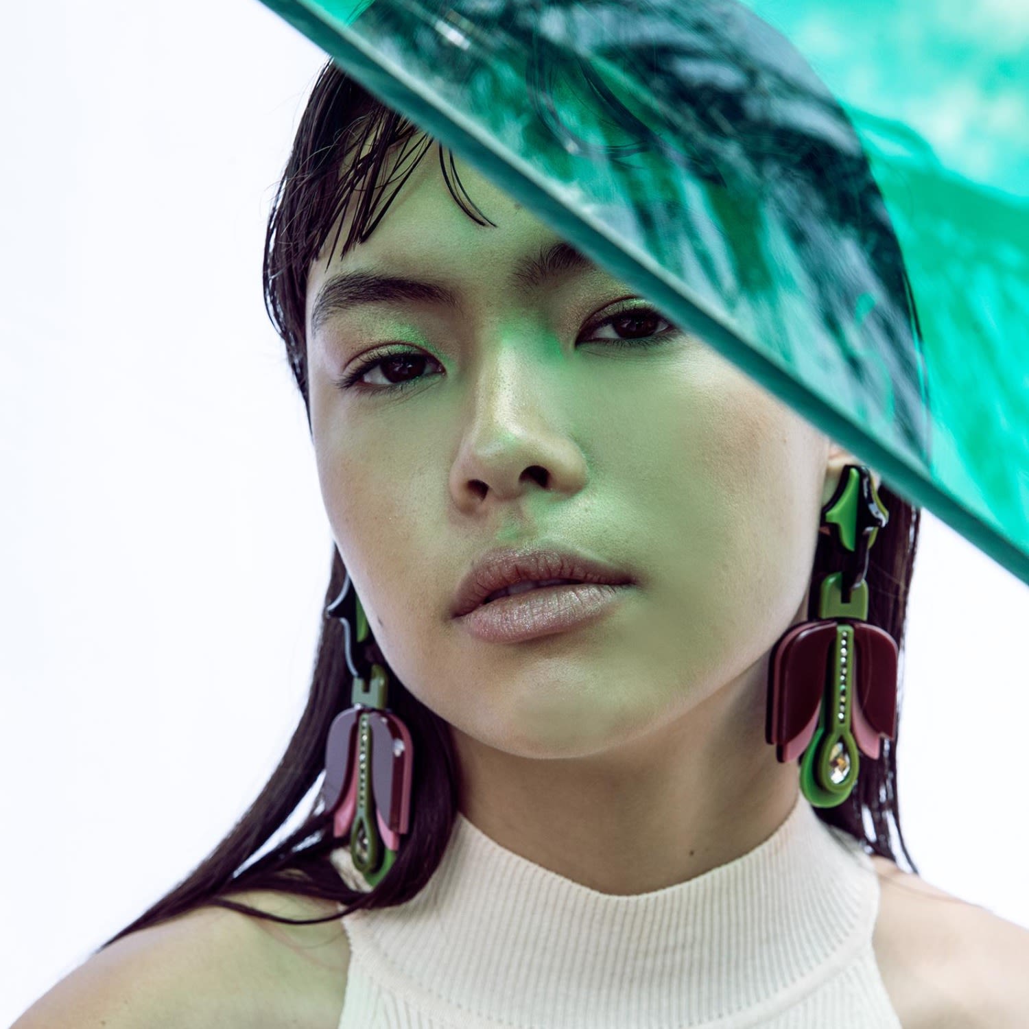 These Acrylic Handmade Earring Tulip Hortensia by Gissa Bicalho are a unique and artistic accessory. The earrings feature a pendant and articulated model with a glass stone and glass rhinestones. The vibrant colors and handcrafted nature make them a playful and creative statement piece.