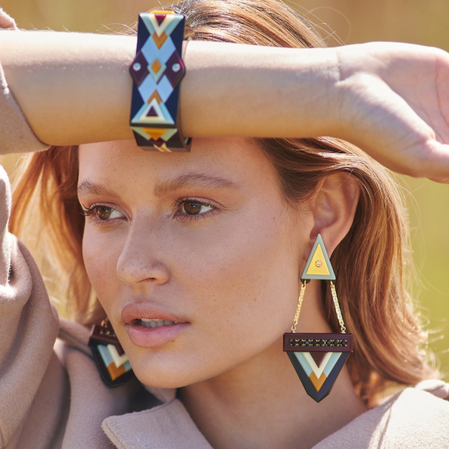 Founded in Brazil in 2012 by designer Gissa Bicalho, the brand is known for bold statement jewelry crafted from acrylic, resin, and brass. Each piece is designed and handmade in Belo Horizonte, combining vibrant colors, architectural forms, and artistic flair. Inspired by contemporary art, geometry, and Brazilian culture, Gissa Bicalho’s creations are instantly recognizable and celebrate individuality through striking, wearable design.