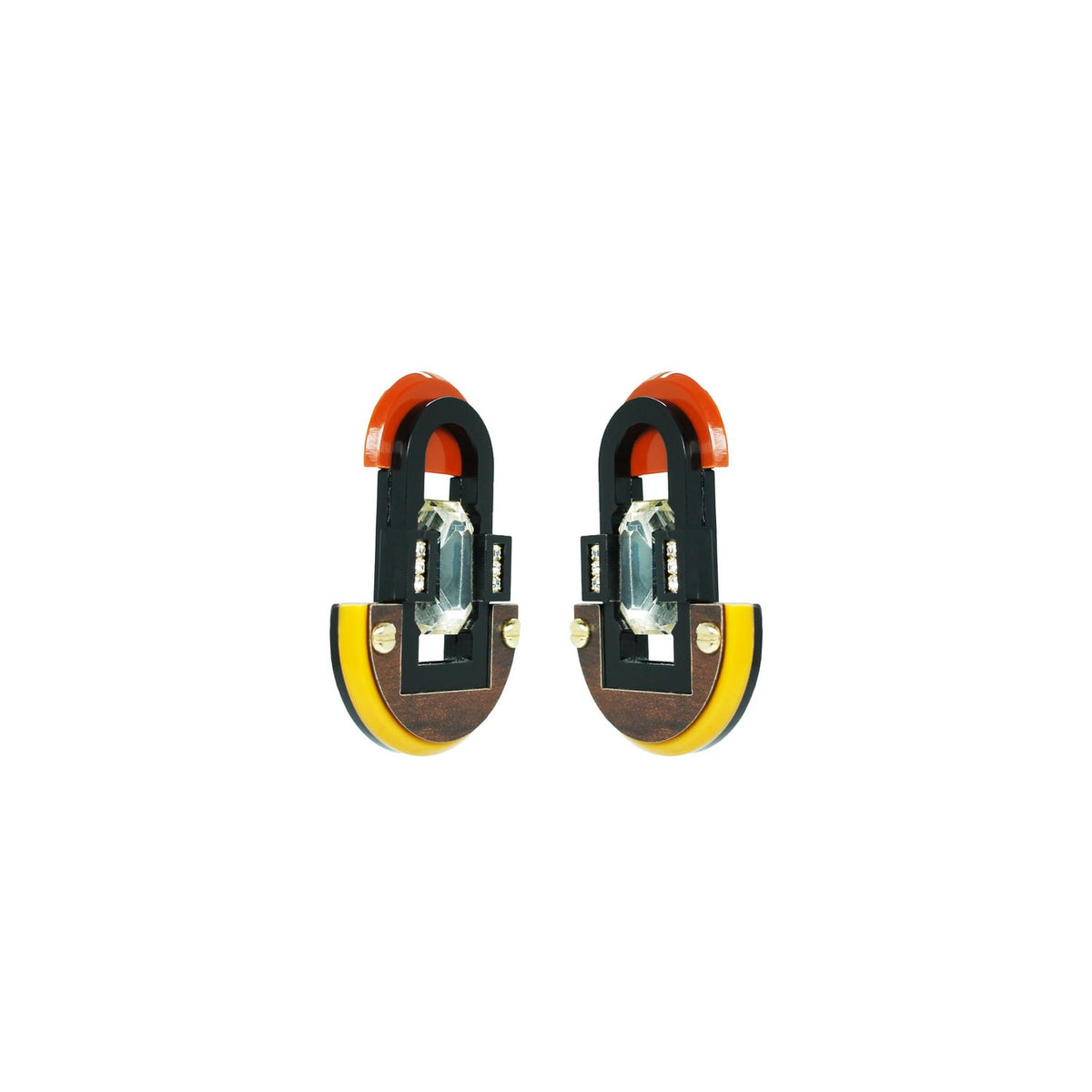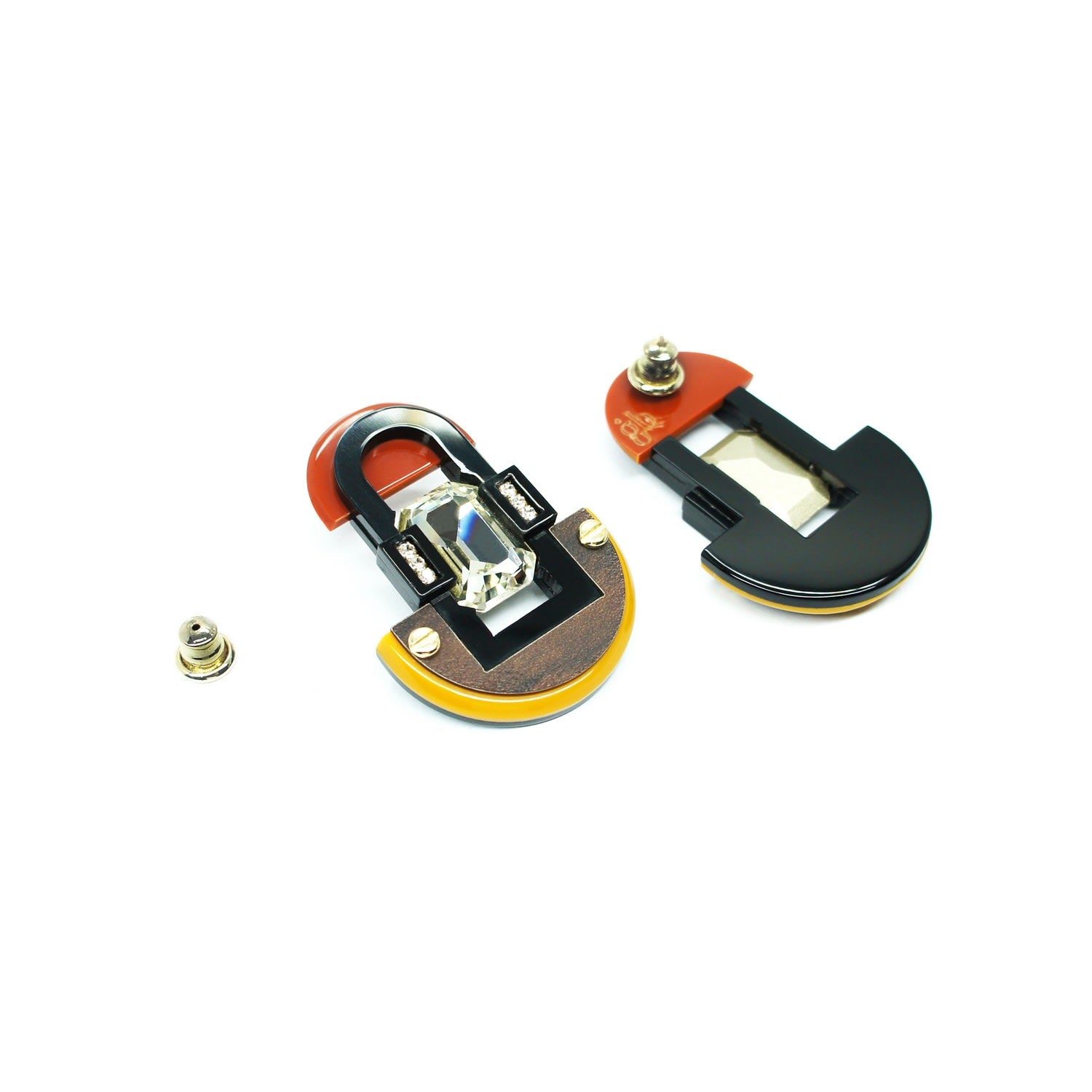 Handmade Acrylic Earring M Deco Mirror Rectangular Stone Mustard