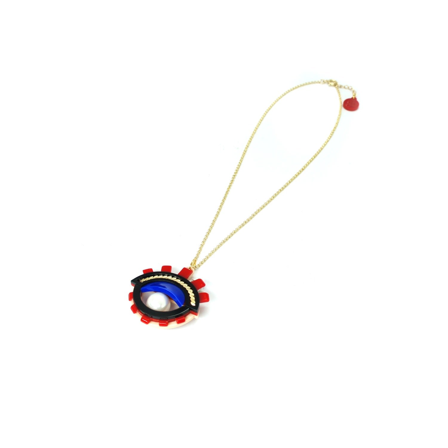 This Acrylic Handmade Necklace Pendant Eye S Red by Gissa Bicalho is a unique and artistic accessory. The necklace, which is crafted from acrylic, features a pendant with a chain and a shell pearl. The eye design adds a bold and creative touch. Its handcrafted nature ensures that each piece is slightly unique.