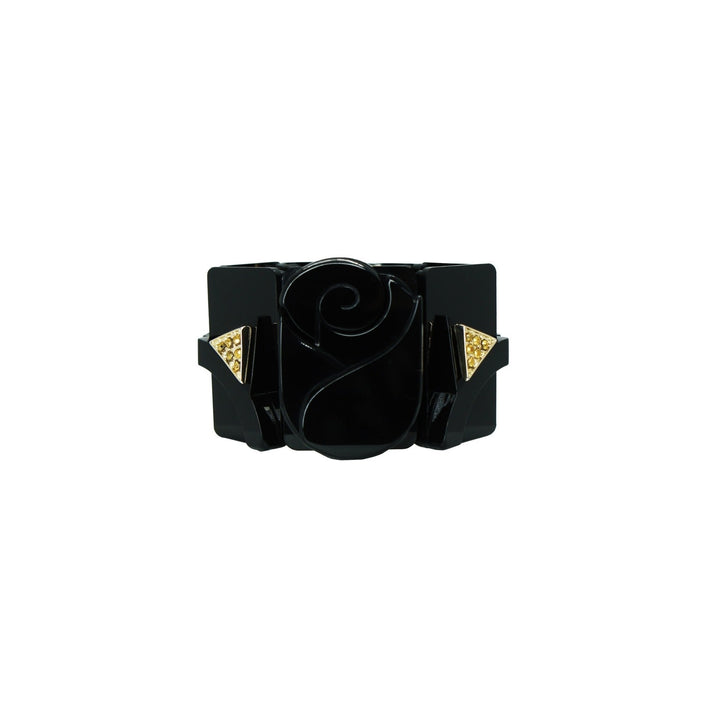 This Handmade Acrylic Bracelet Rose Black by Gissa Bicalho is a unique and artistic accessory. The bracelet, which is made of acrylic, features a metal ornament and a magnetic clasp closure. Its handcrafted nature ensures each piece is slightly unique, adding a personal and one-of-a-kind touch to your style.