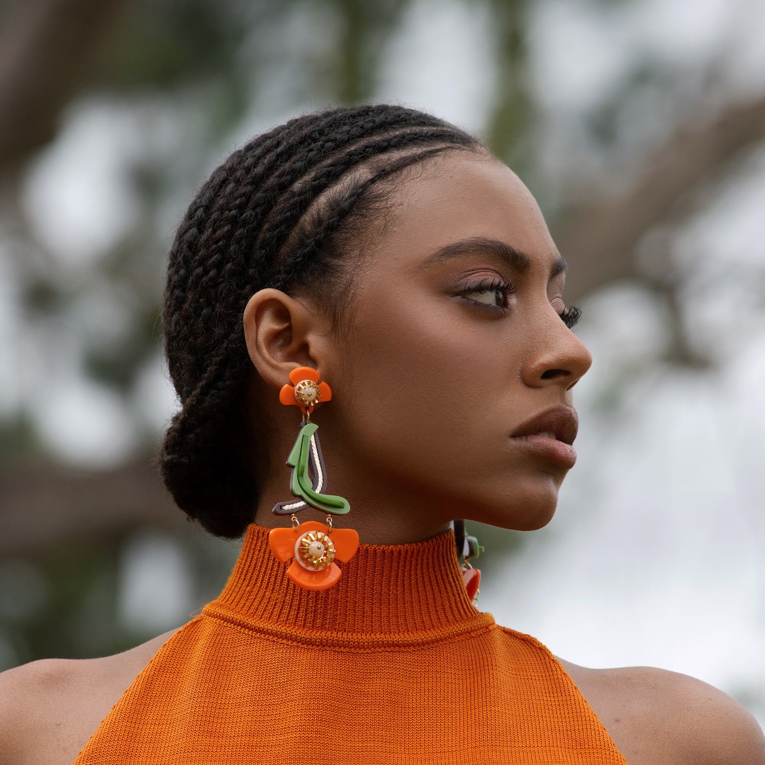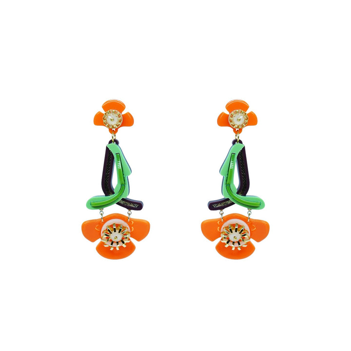 Acrylic Handmade Earring L Wild Flower Living Coral