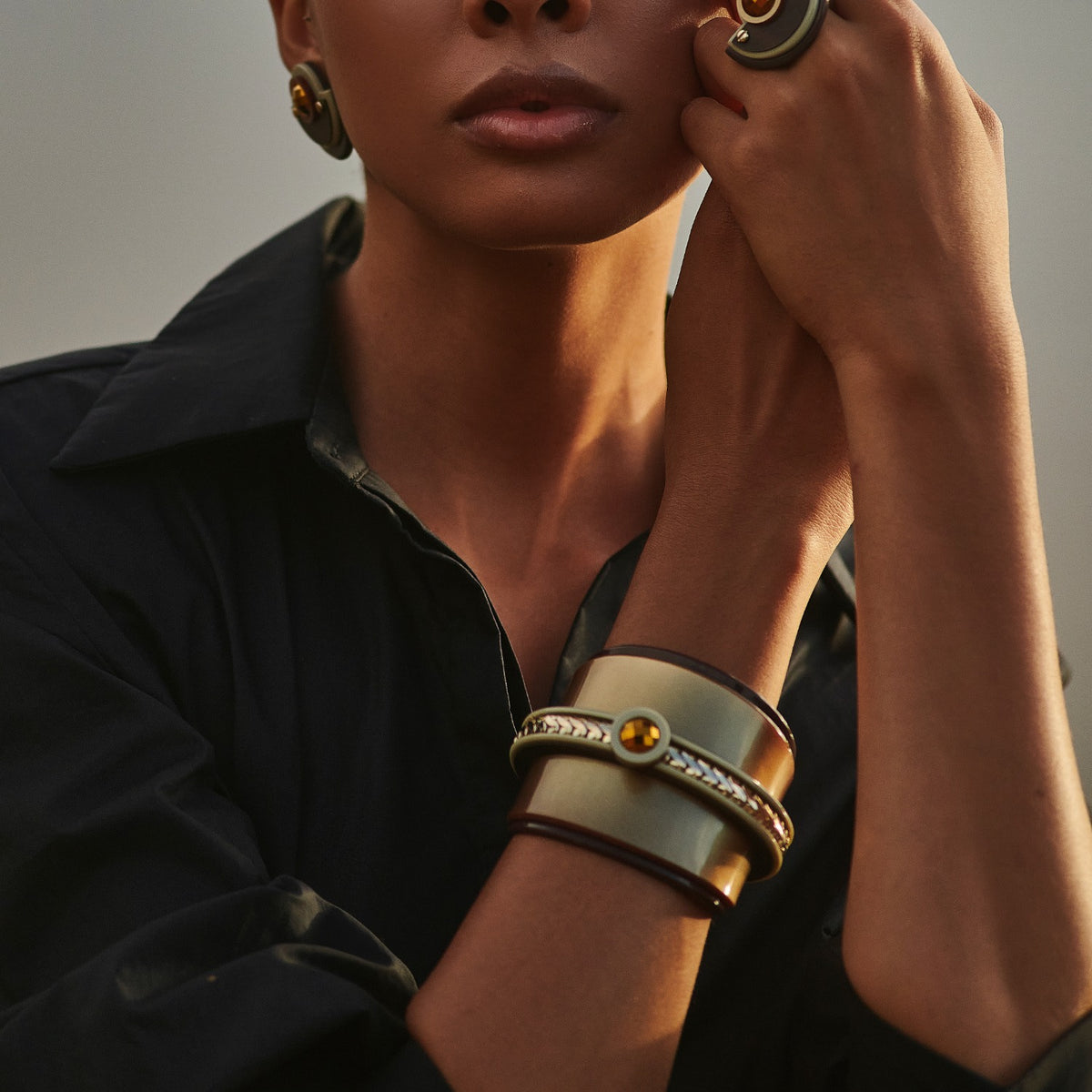Founded in Brazil in 2012 by designer Gissa Bicalho, the brand is known for bold statement jewelry crafted from acrylic, resin, and brass. Each piece is designed and handmade in Belo Horizonte, combining vibrant colors, architectural forms, and artistic flair. Inspired by contemporary art, geometry, and Brazilian culture, Gissa Bicalho’s creations are instantly recognizable and celebrate individuality through striking, wearable design.