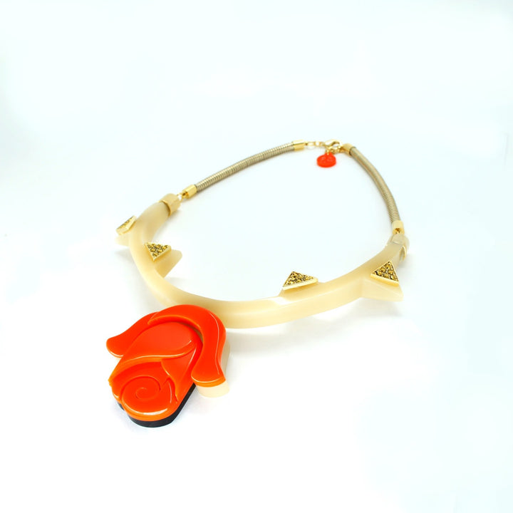 Handmade Acrylic Necklace Chocker Rose - Kahki
