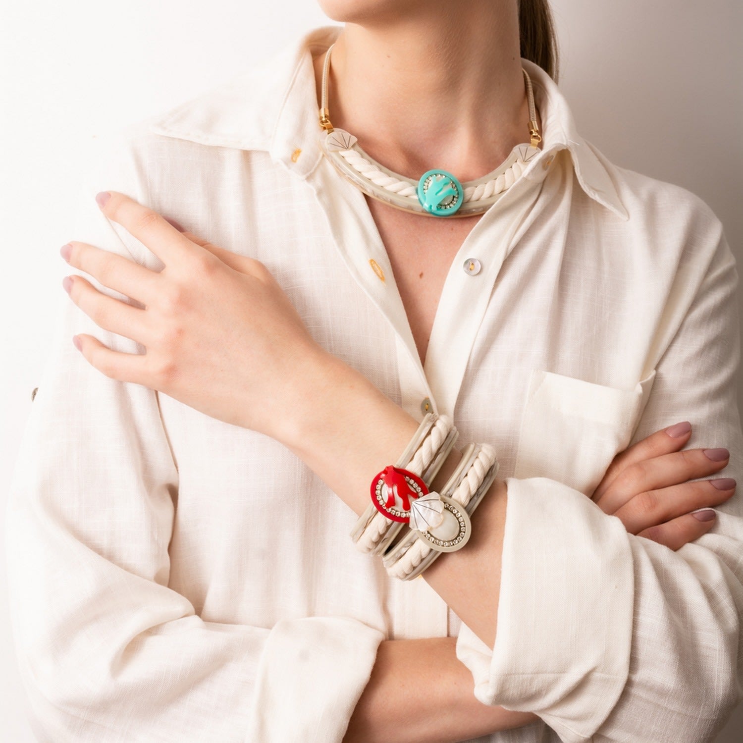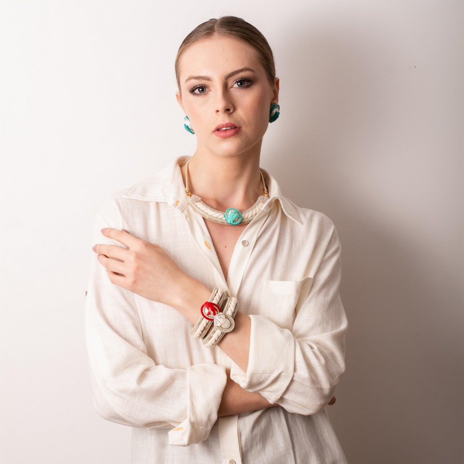 Founded in Brazil in 2012 by designer Gissa Bicalho, the brand is known for bold statement jewelry crafted from acrylic, resin, and brass. Each piece is designed and handmade in Belo Horizonte, combining vibrant colors, architectural forms, and artistic flair. Inspired by contemporary art, geometry, and Brazilian culture, Gissa Bicalho’s creations are instantly recognizable and celebrate individuality through striking, wearable design.