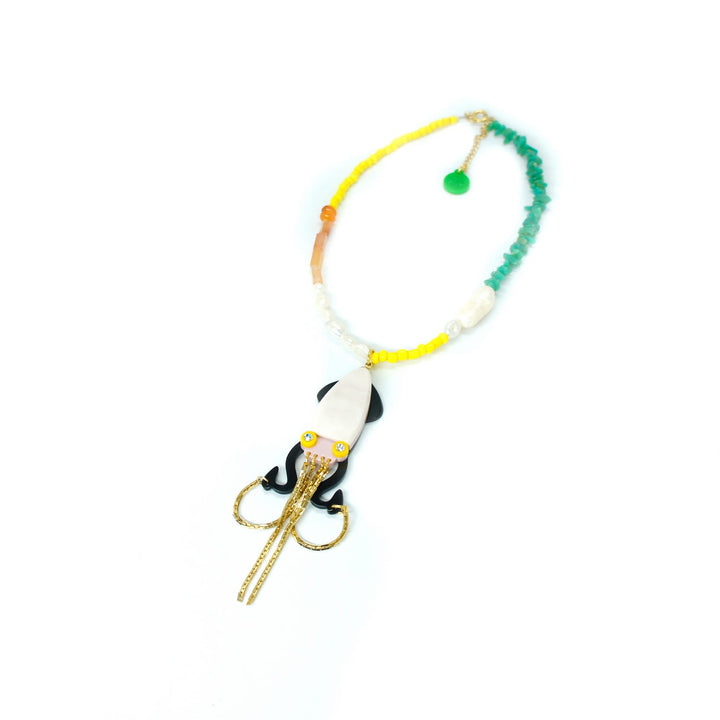 Handmade Necklace Beads And Pendant Octopus Black