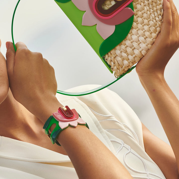Founded in Brazil in 2012 by designer Gissa Bicalho, the brand is known for bold statement jewelry crafted from acrylic, resin, and brass. Each piece is designed and handmade in Belo Horizonte, combining vibrant colors, architectural forms, and artistic flair. Inspired by contemporary art, geometry, and Brazilian culture, Gissa Bicalho’s creations are instantly recognizable and celebrate individuality through striking, wearable design.