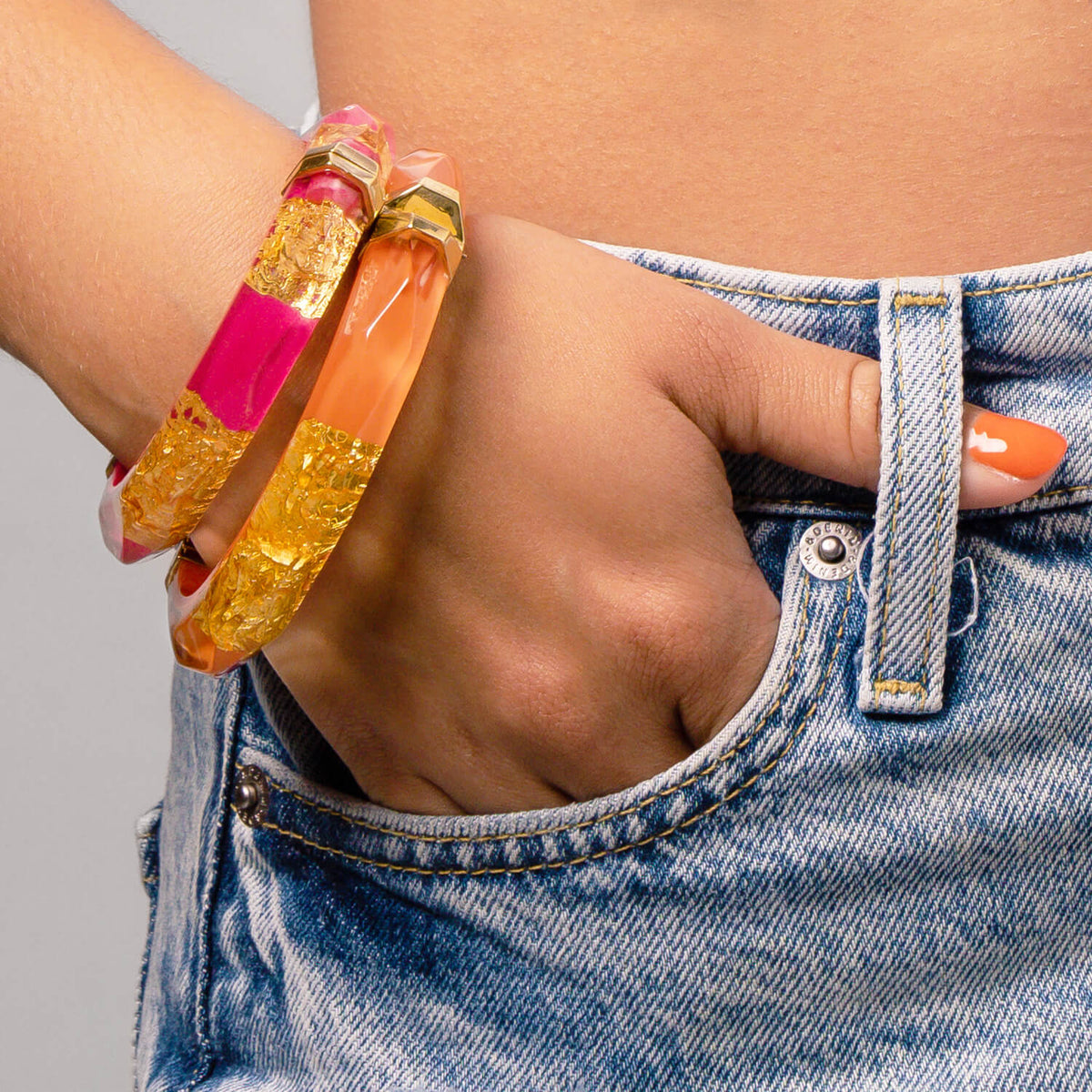 24K Gold Leaf Lucite Bangle In Deep Pink Dahlia