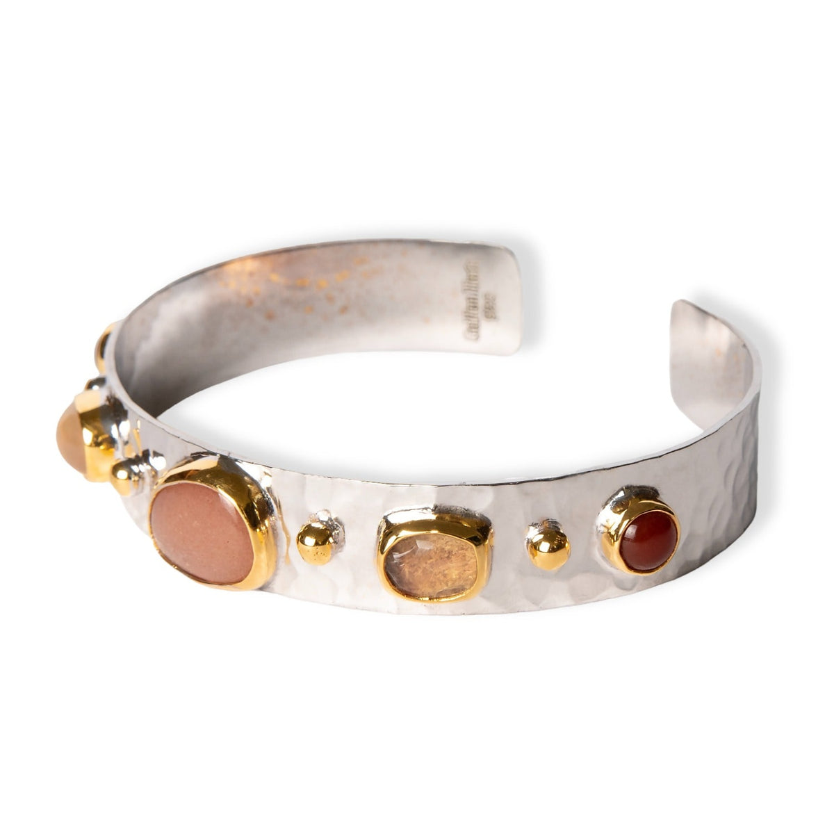 This Helen Sunset Moonstone Bracelet by Golden Horn Jewellery is inspired by the timeless allure of Helen of Troy. At its heart rests a luminous moonstone, revered for its purity and nurturing energy, set within a Greek-style cuff. Blending ancient symbolism with modern artistry, this bracelet is both protective and empowering, offering a touch of mythic elegance to any collection.