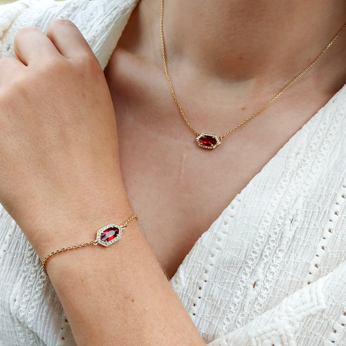 These clip-on earrings are 23 carat gold plated and are set with red crystal and small sparkling crystals.