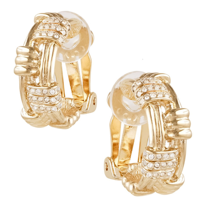 Gold & Crystal Design Clip On Earrings, Series Tricot