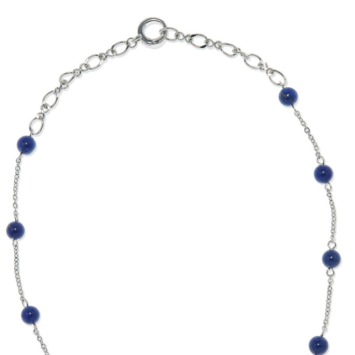 The Platinum & Lapis Lazuli Gemstone Necklace from Grossé is a casual chic piece perfect for any occasion. It features 11 gorgeous Lapis Lazuli gemstones on a platinum-plated chain. Each stone is unique, adding to the individuality and beauty of the necklace.