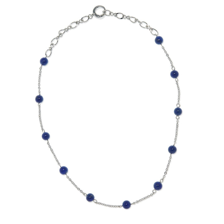 This necklace is platinum plated and features 11 natural Lapis Lazuli gemstones (6mm each).