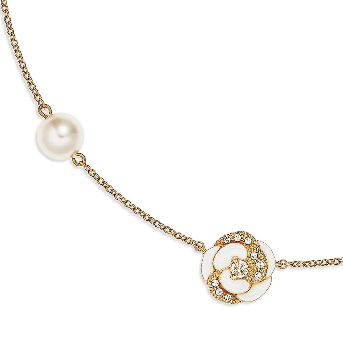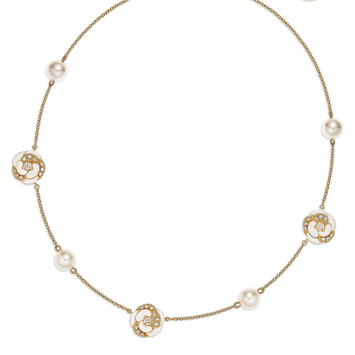 Crystal & Pearl Gold Necklace, Series Blanc Camelia