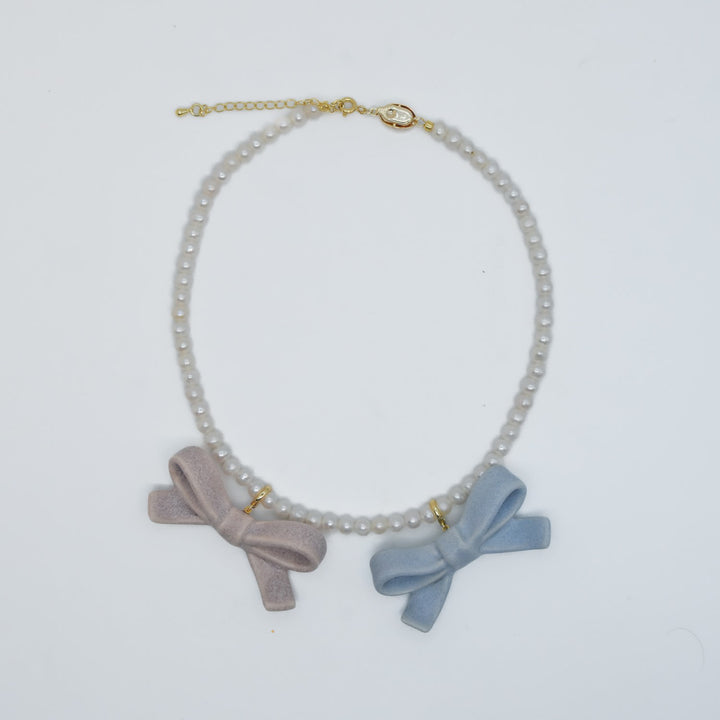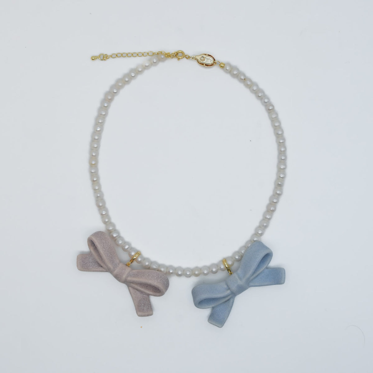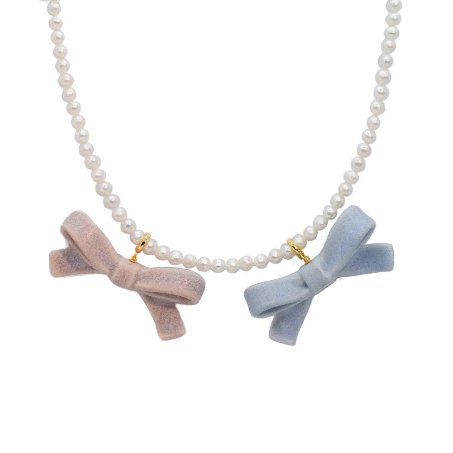 Bowtie Maniac Medium Ceramic Ribbon Bowtie Round Baroque Freshwater Pearl Multi Charms Necklace Pink And Blue Set Gold